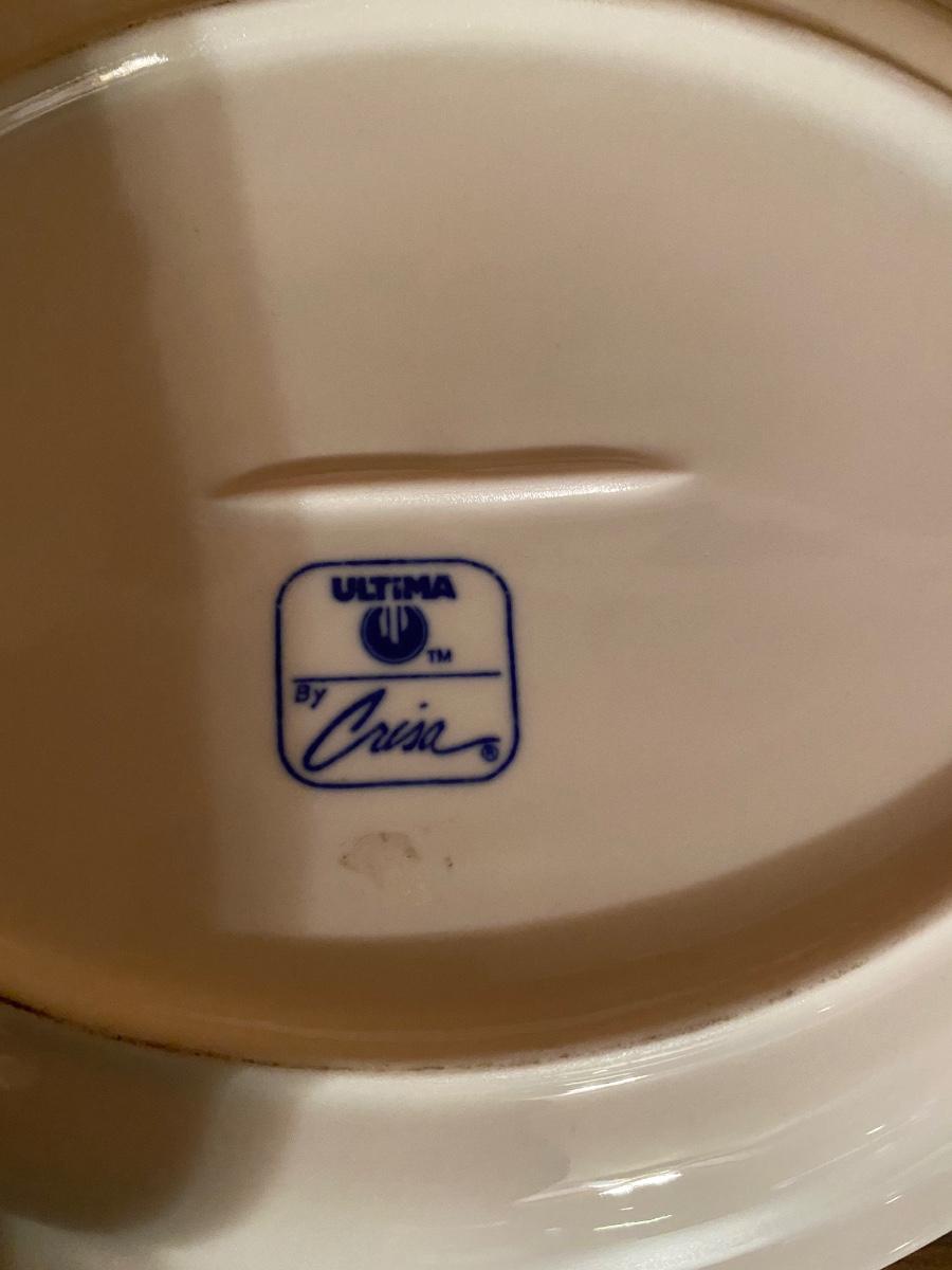 Set of 8 oval restaurant-ware ironstone dishes. Ultima by Crisa. Approx 10”L. Very good condition