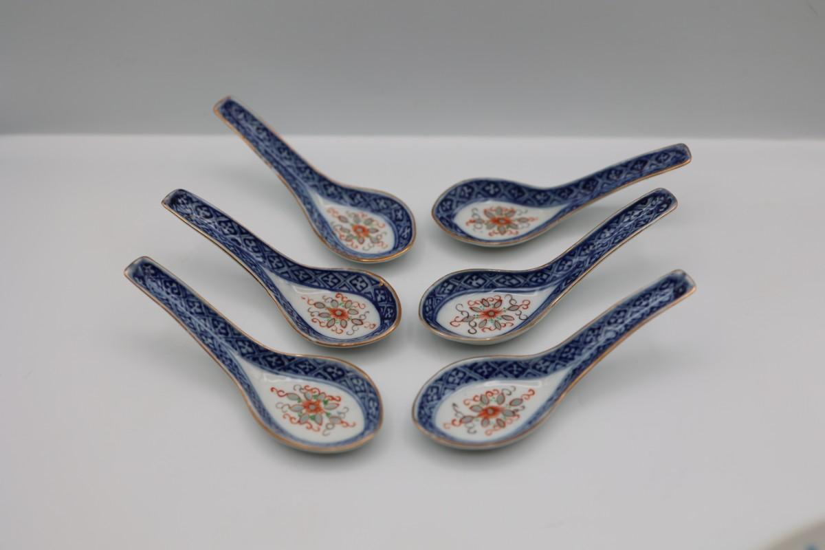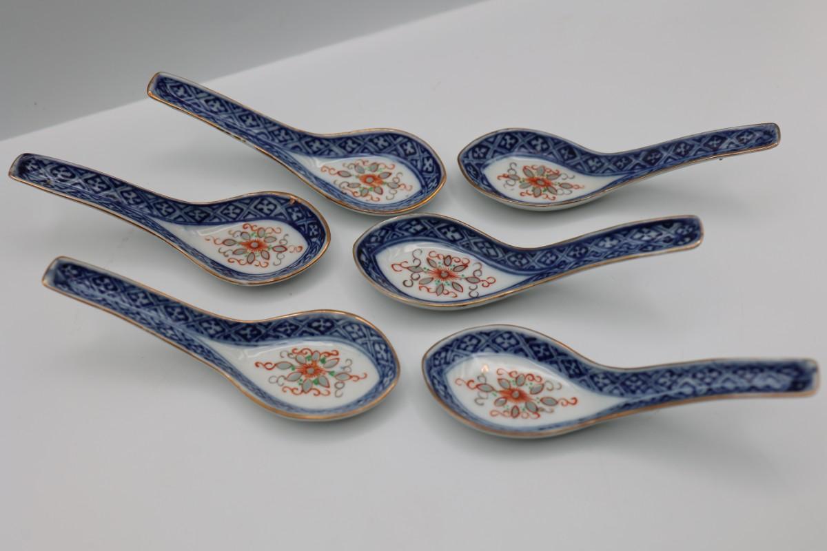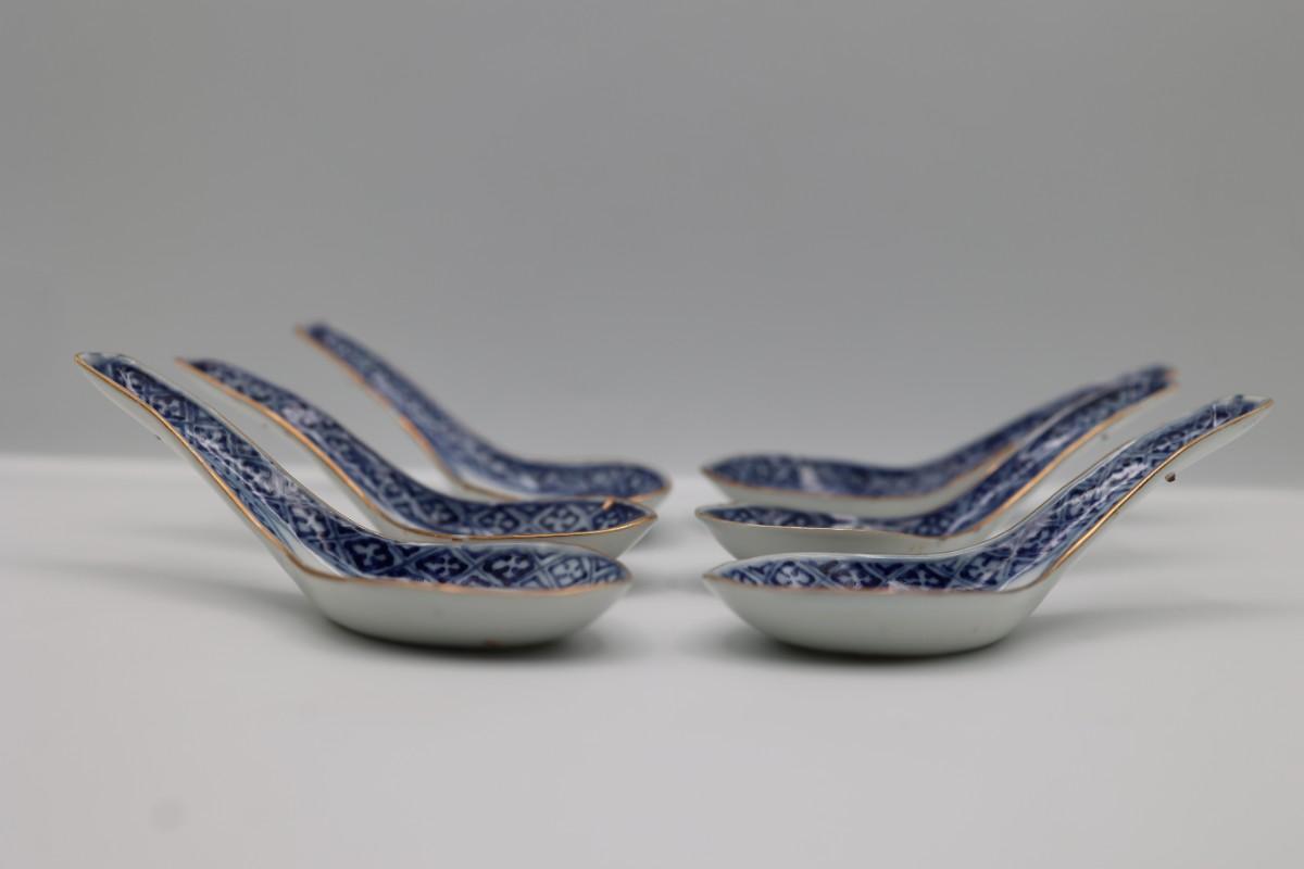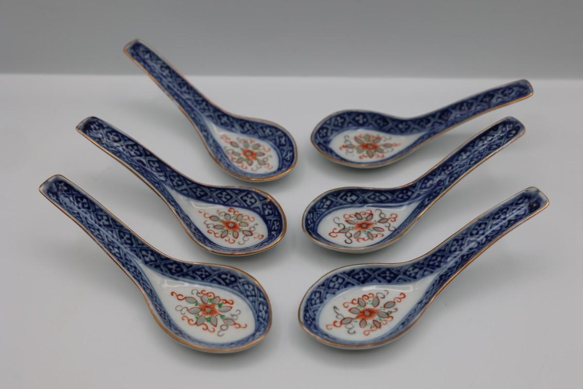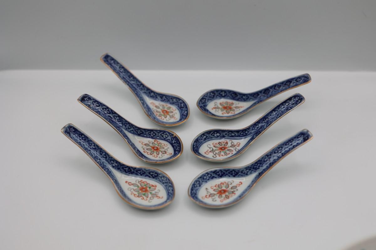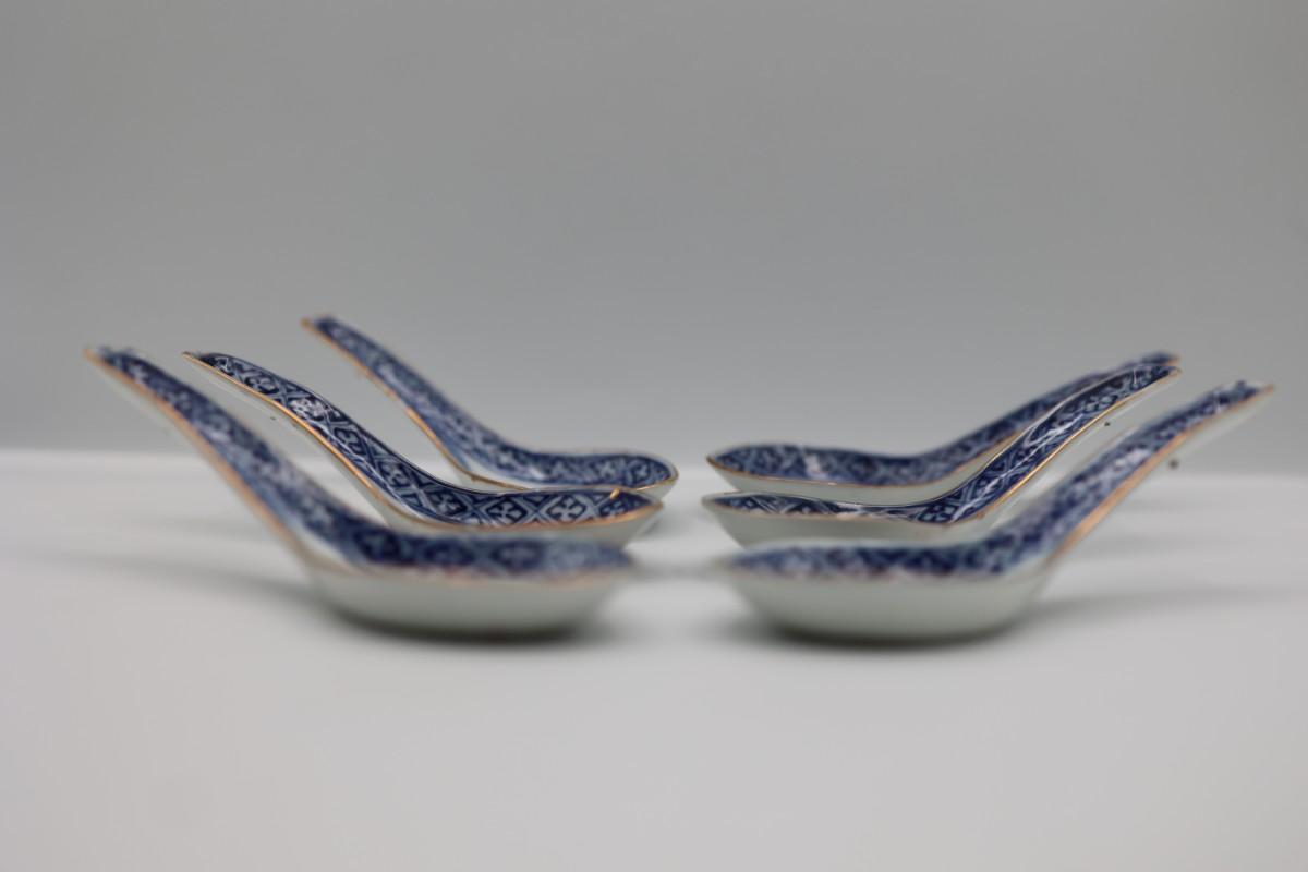 Set of Six Porcelain Soup Spoons