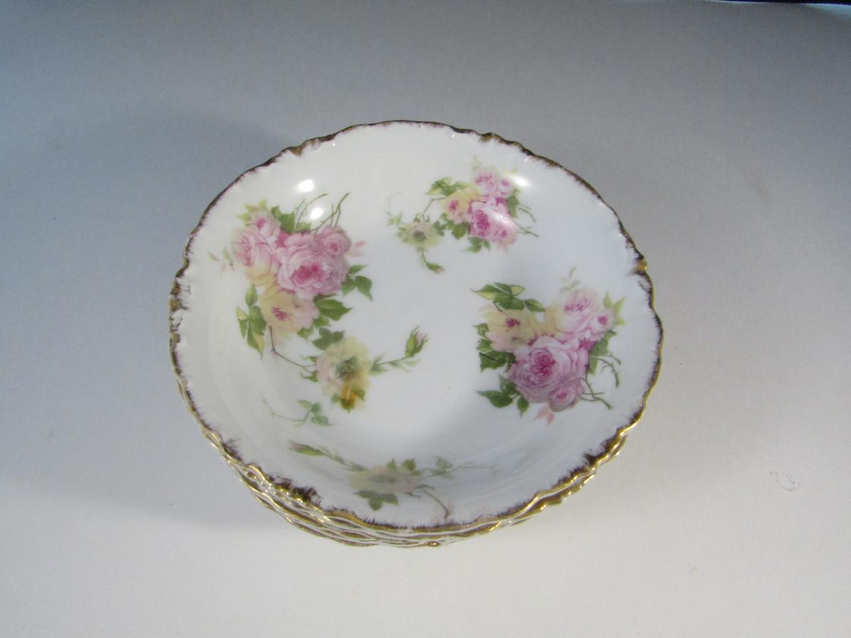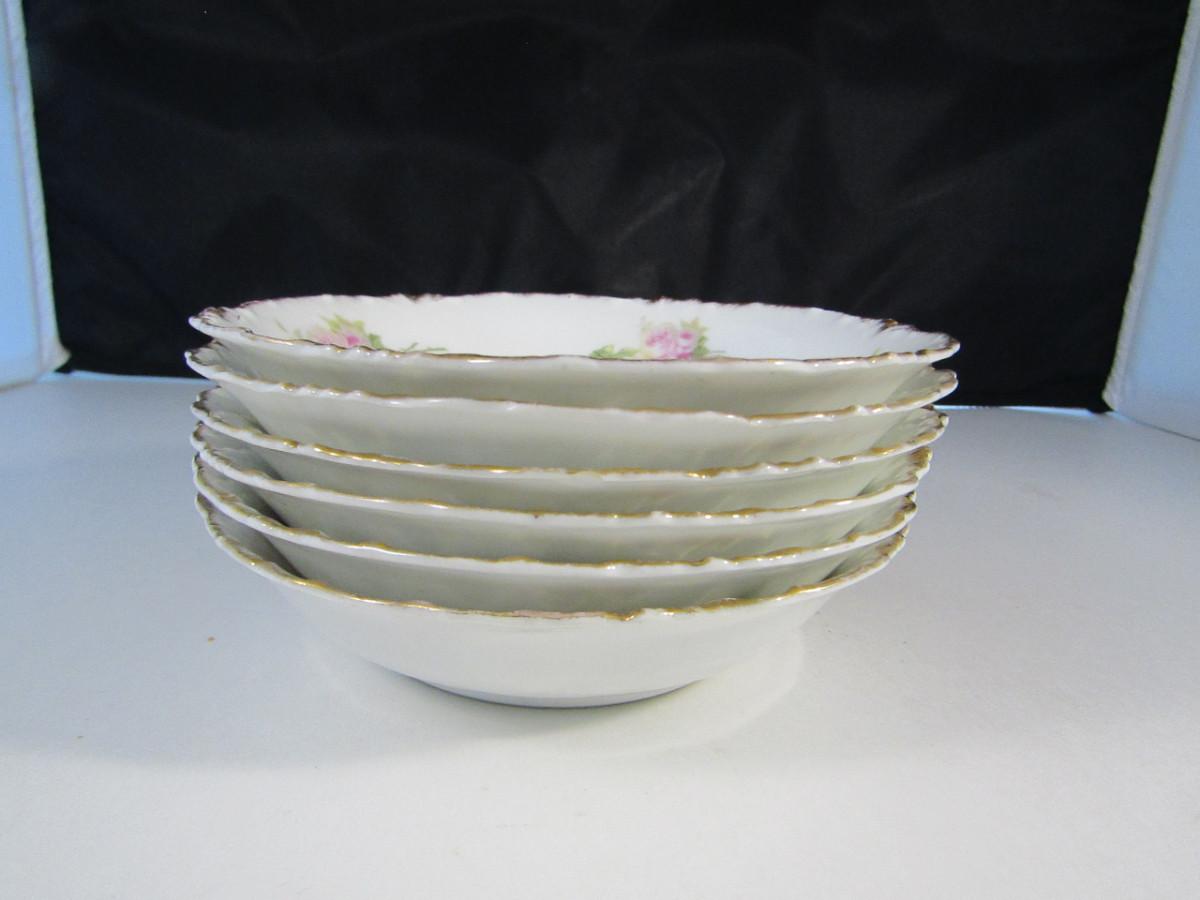 Set of Six Rosenthal China Bowls- Hand Painted Roses with Gilt Edge- Approx 5 3/4" in Diameter. Please see all pictures- one has small chip.