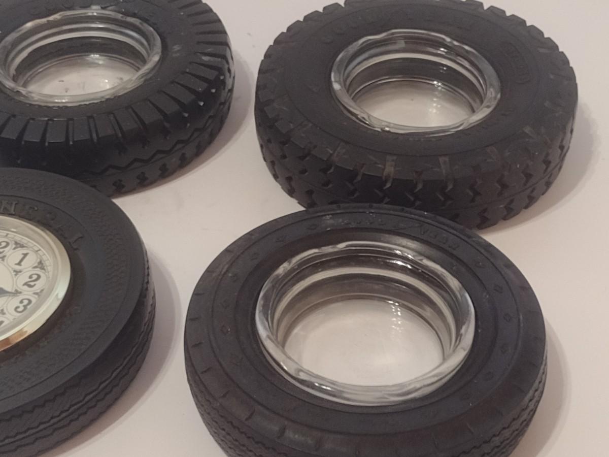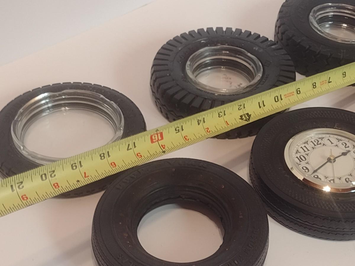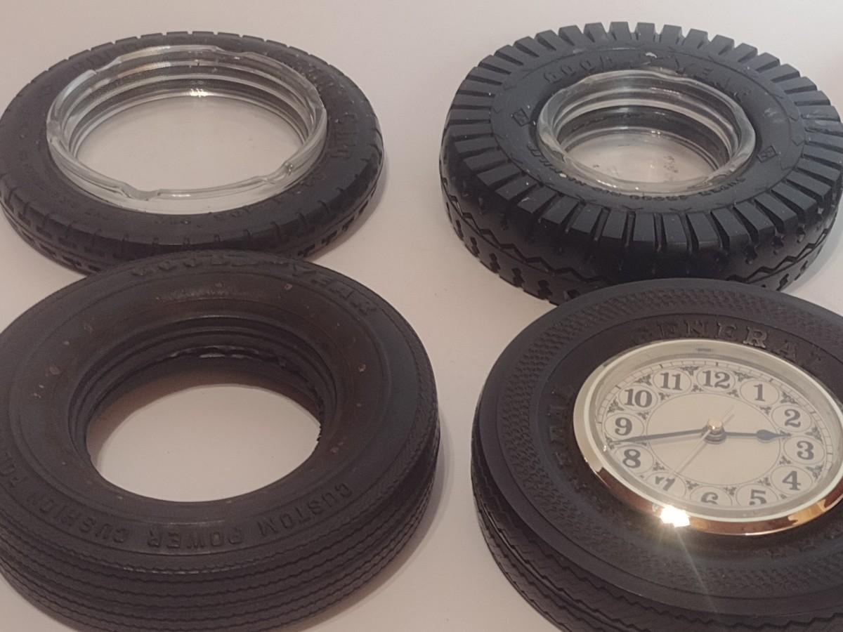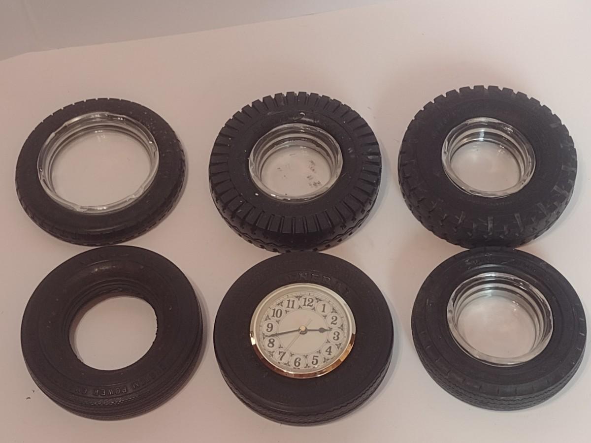 Set of Six Rubber Tire Base Ashtray Holders Advertising Good Year, Good Rich, General