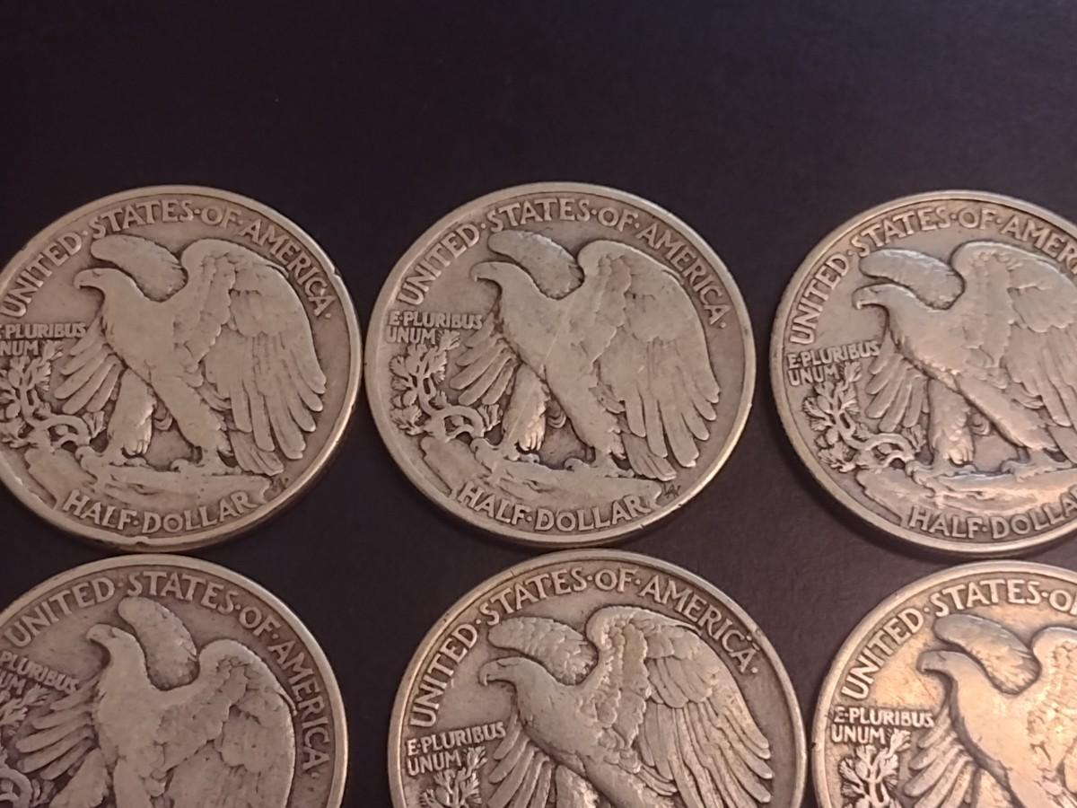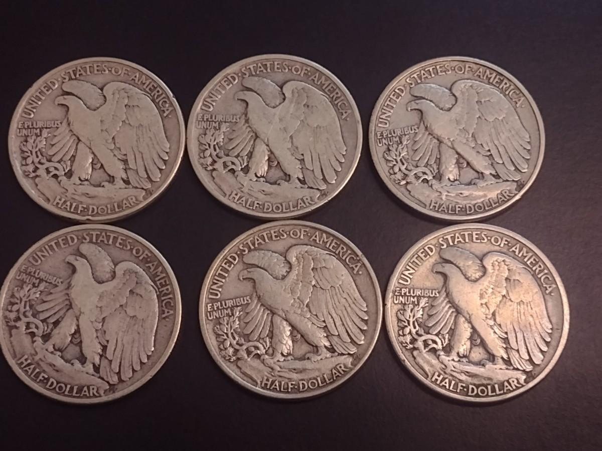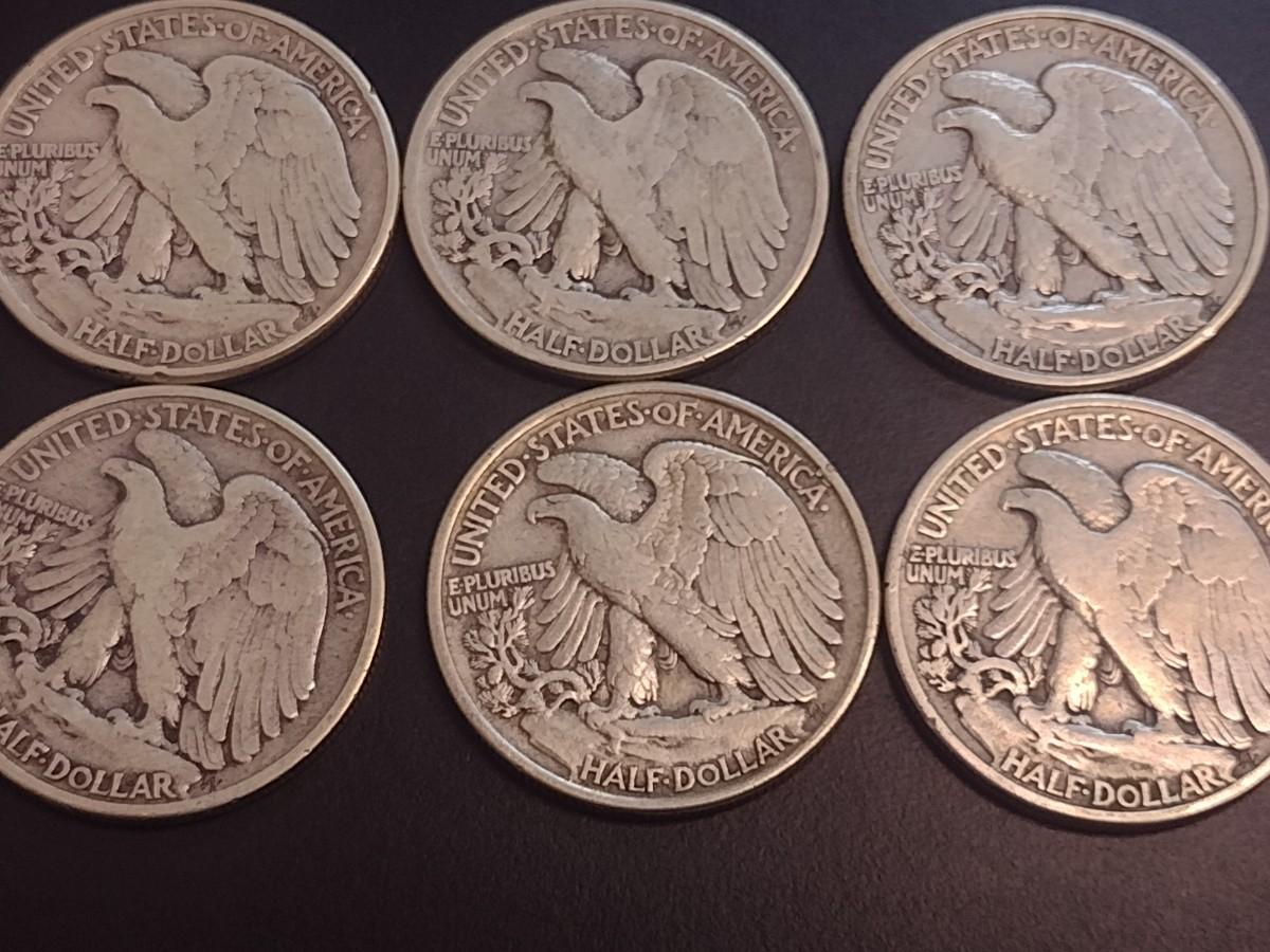 Set of Six U.S. Mint Walking Liberty Silver Half Dollars Various Dates Circulated (5)