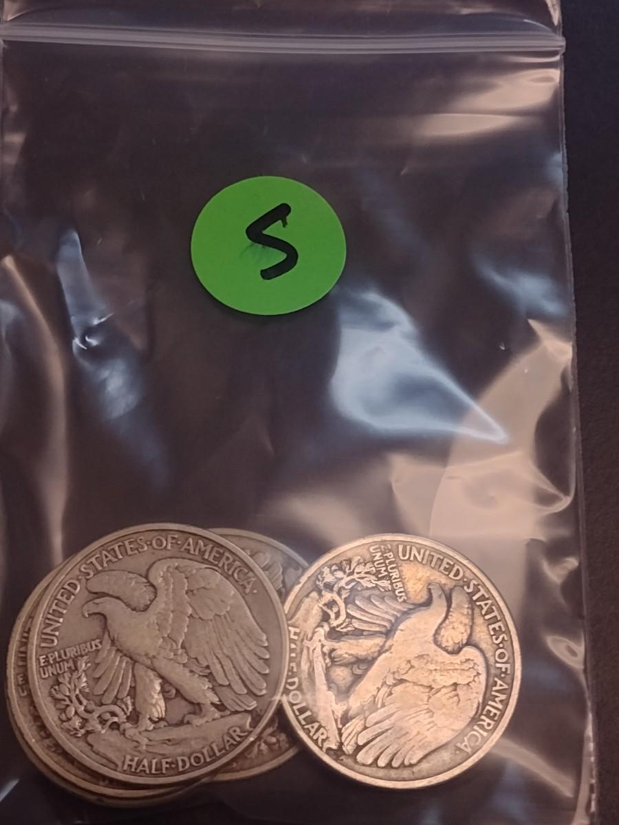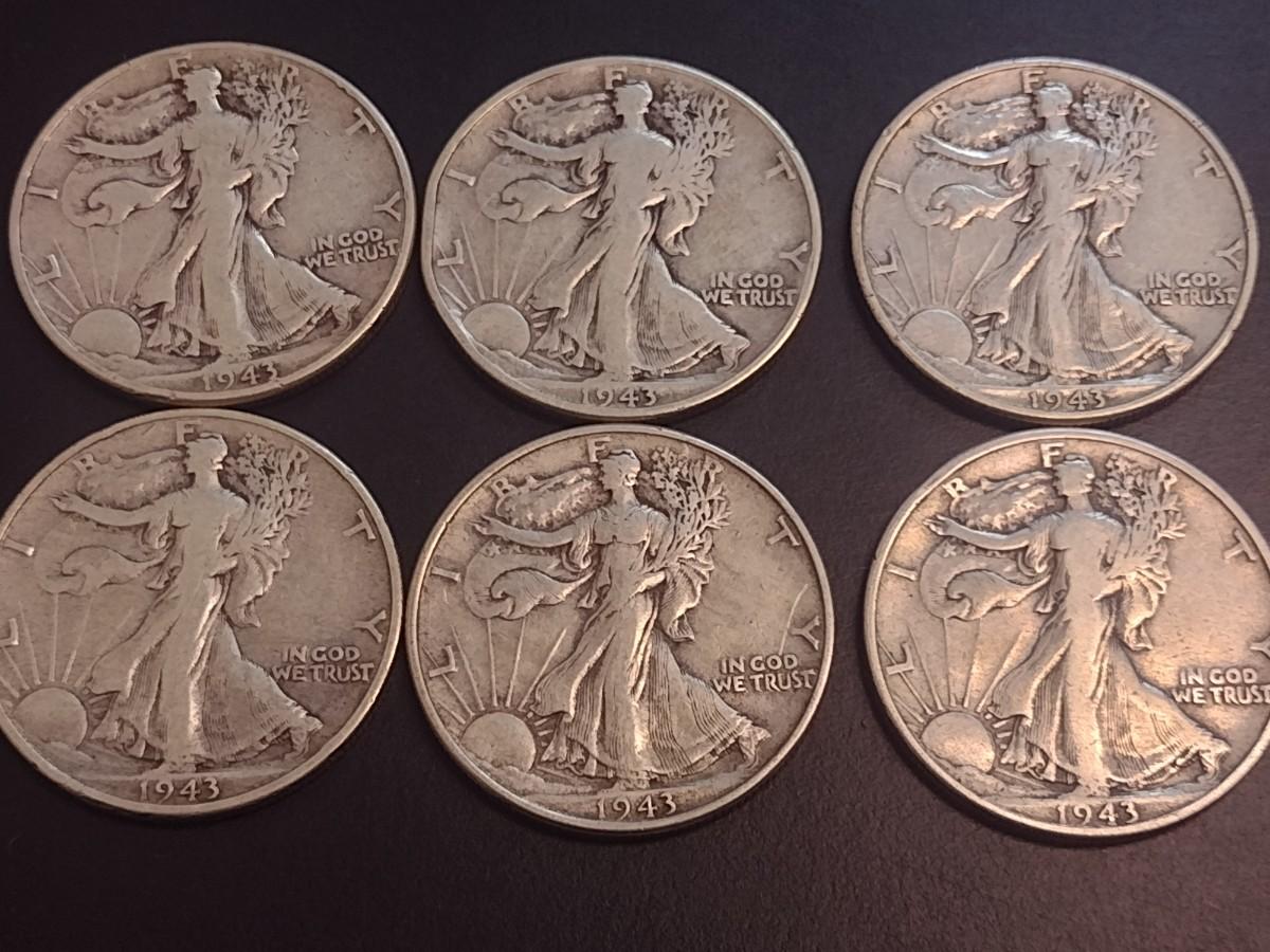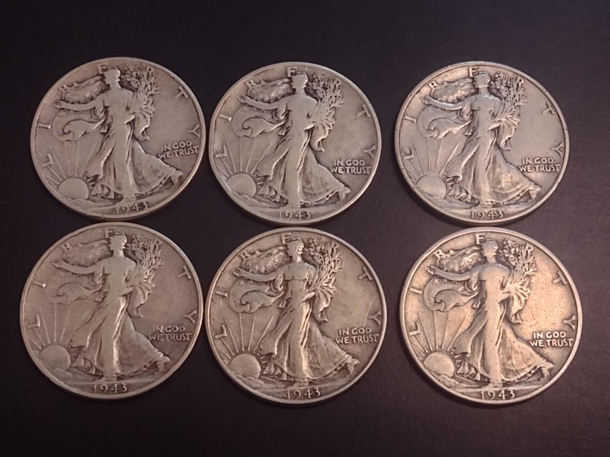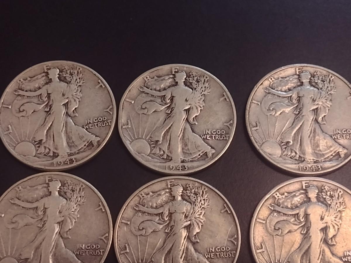 Set of Six U.S. Mint Walking Liberty Silver Half Dollars Various Dates Circulated (5)