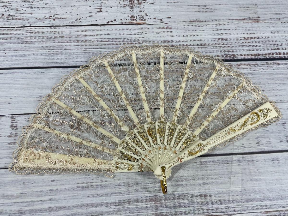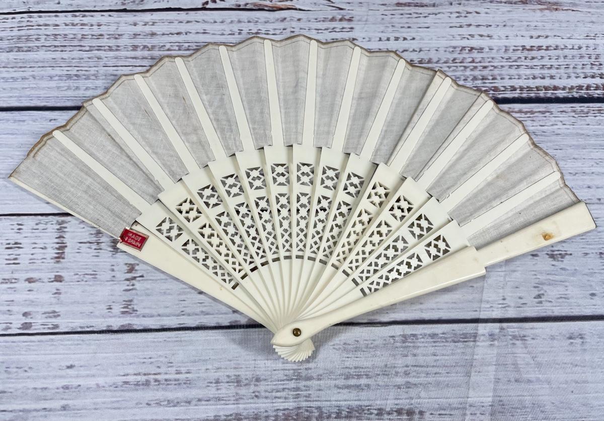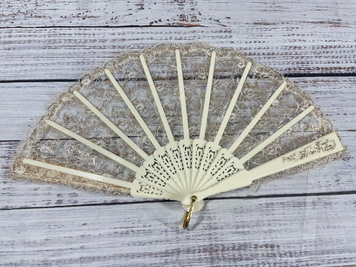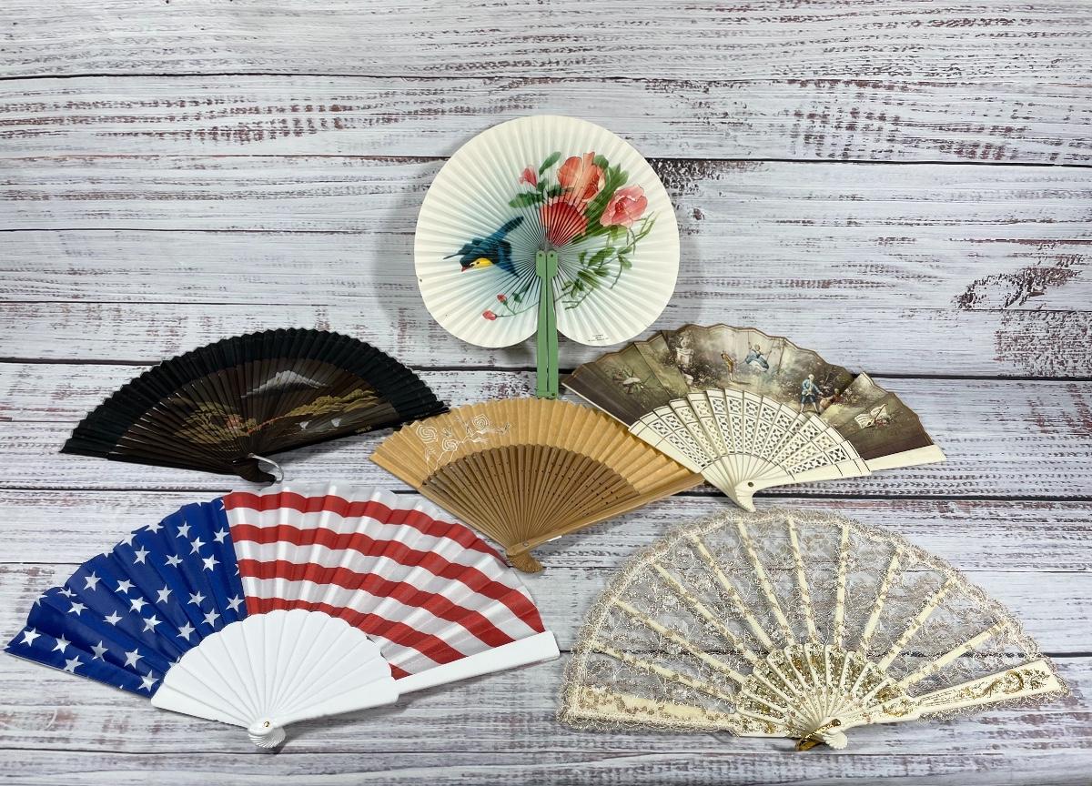 There are six fans in this set. All are in great condition. Some fans are more flimsier than others. Some of these items have discoloration. They are a little dusty due to years of ownership.