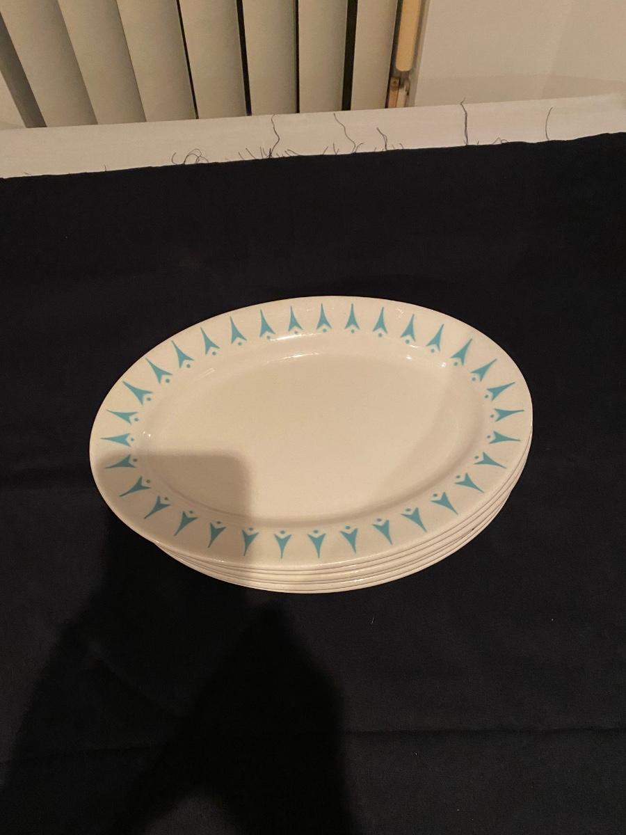 Set of six vintage ironstone oval plates, MCM. Some scratches but no chips or cracks. 11-3/4”w