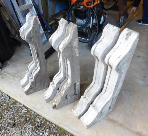Set of Six Vintage Large Wood Architectural Corbels 30"x11" at preview we inspected corbels closer and observed that they are not 100% due to age and natural weathering. They will require some restoration touch ups but nice items for their age and size.