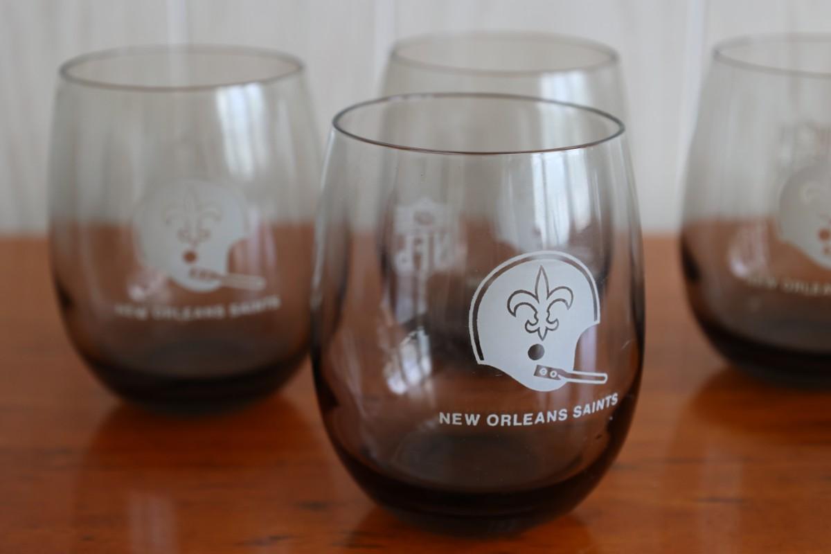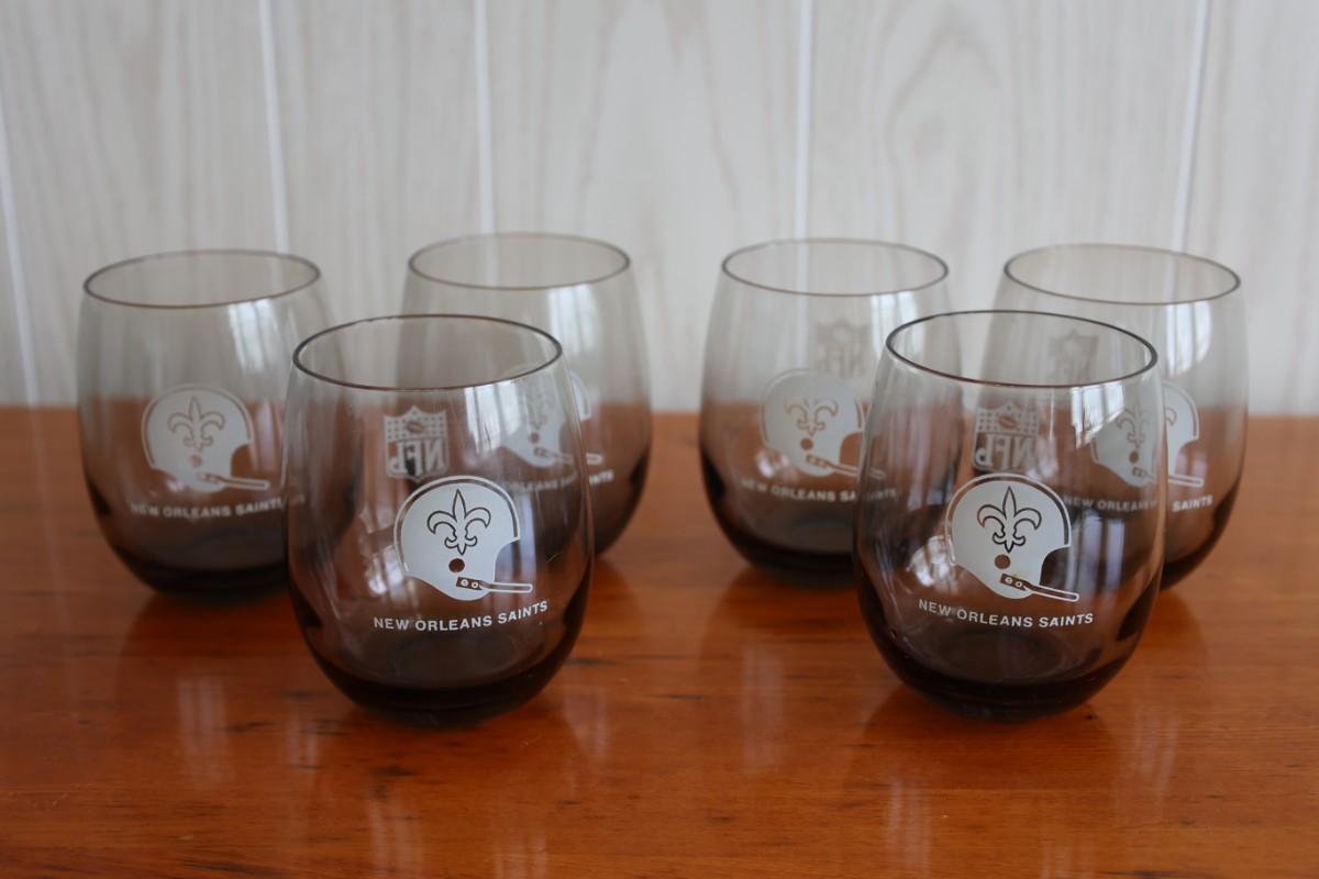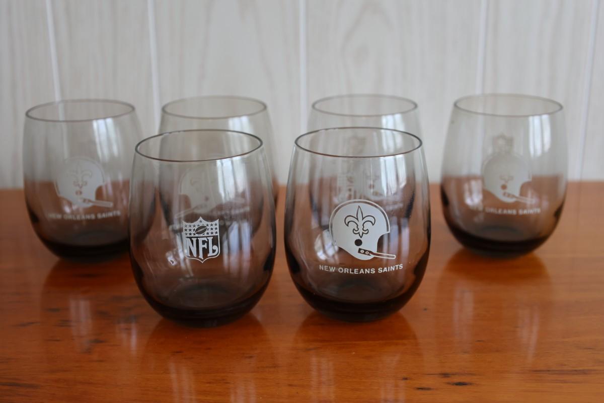 Set of Six Vintage NFL New Orleans Saints Smoked Glass (6)
