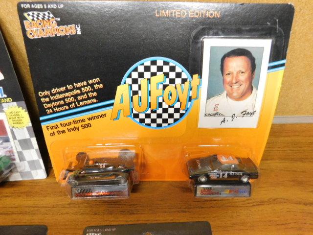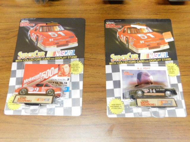 Set of Six Vintage Racing Champions NASCAR Die Cast Stock Cars with Driver's Trading Card  and A.J.Foyt