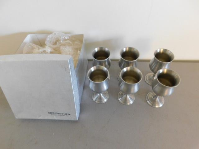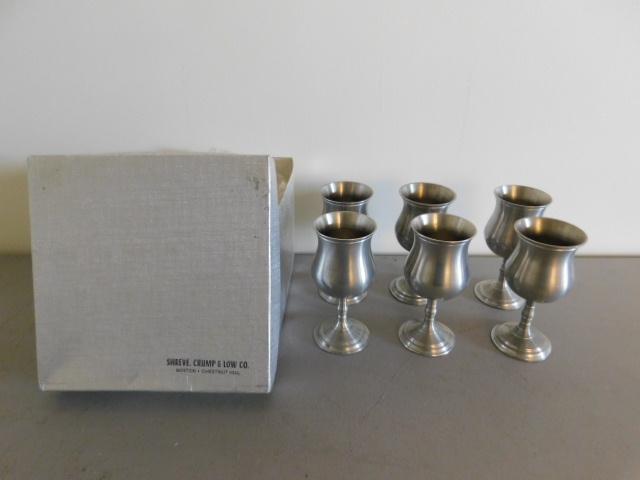 Set of Six Vintage Shreve, Crump, and Low Pewter Goblets