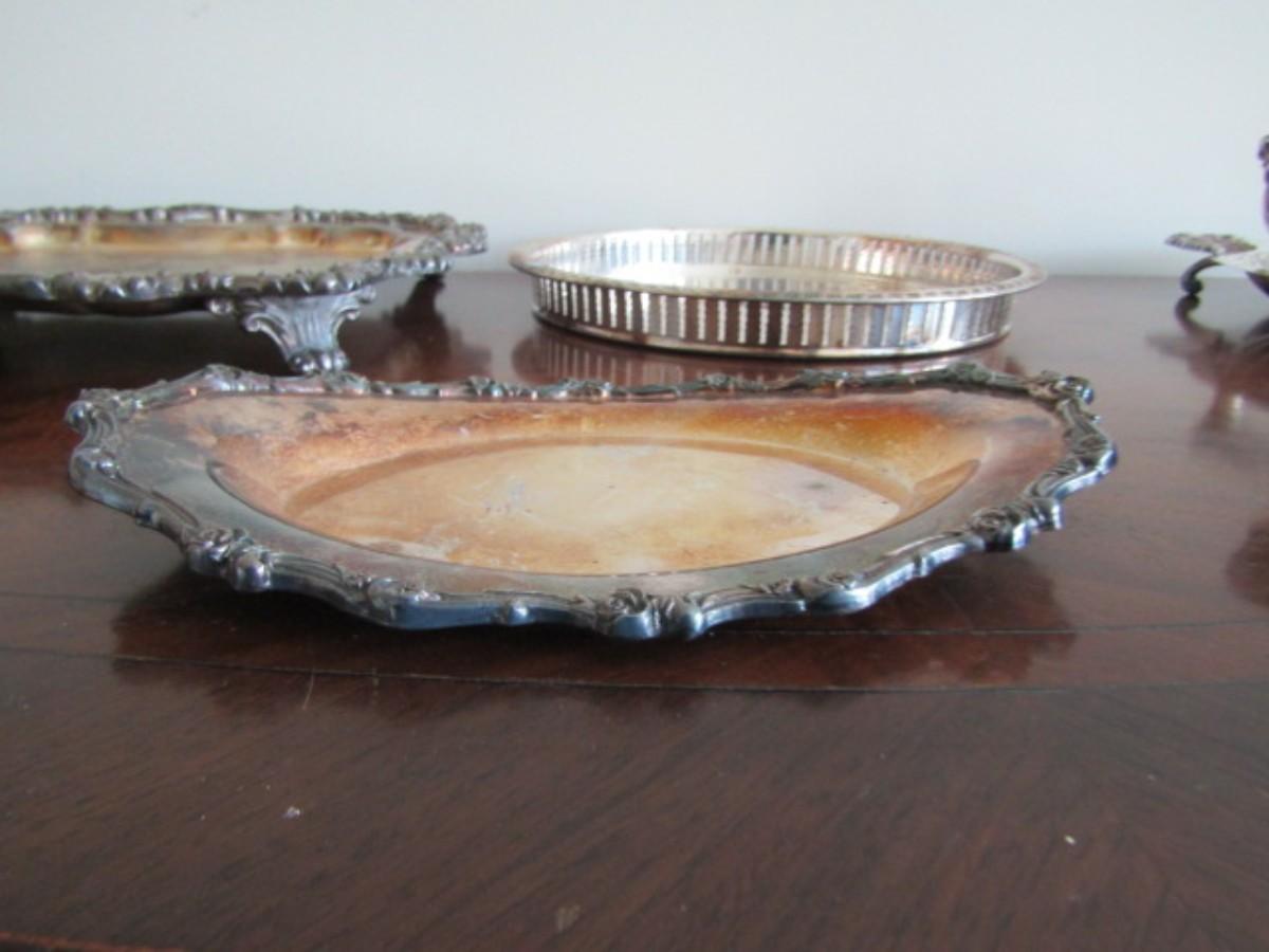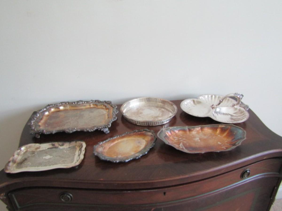 Set of Six Vintage Silver-Plate Serving Platters Various Shapes (#6)