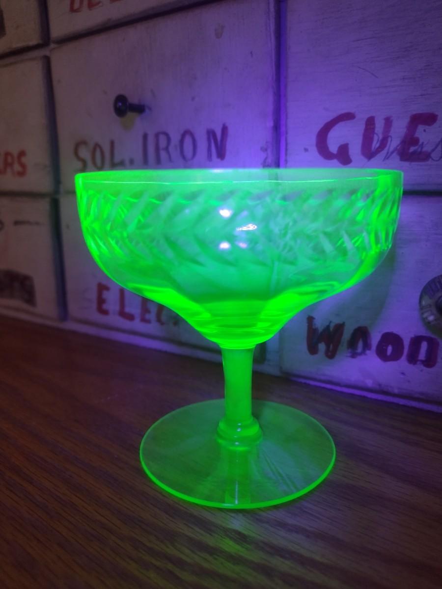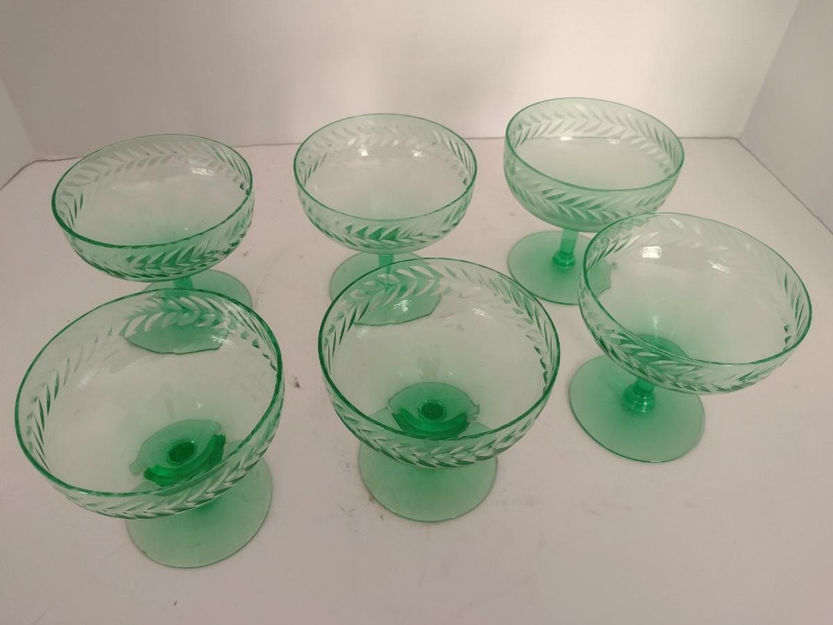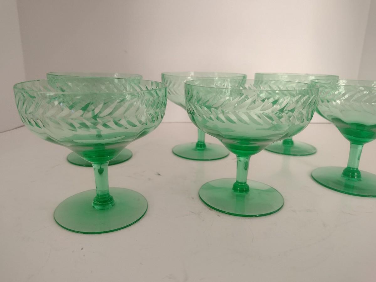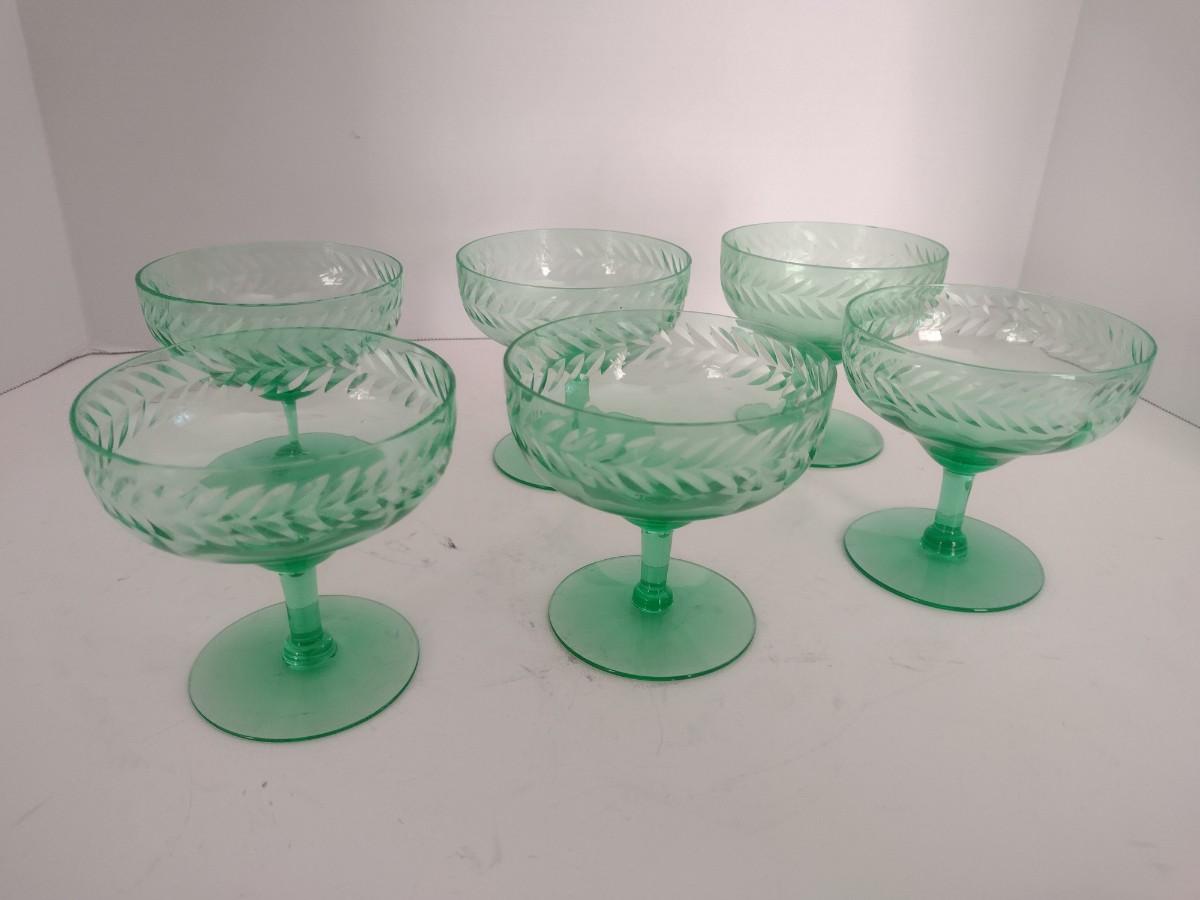 Set of Six Vintage Uranium Stemmed Glasses