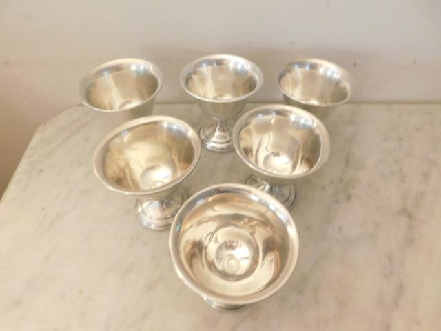 Set of Six Vintage Weighted Sterling Silver Footed Dessert Cups Approximately 570 grams total weight