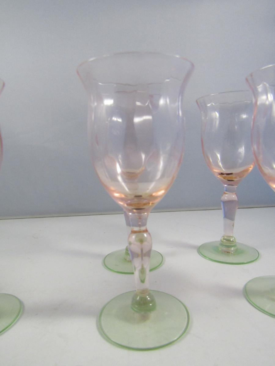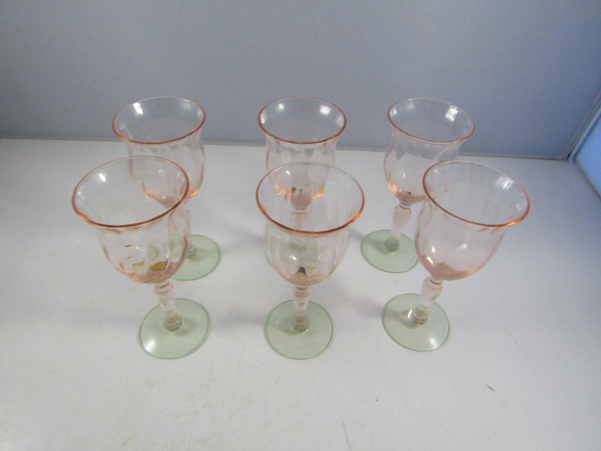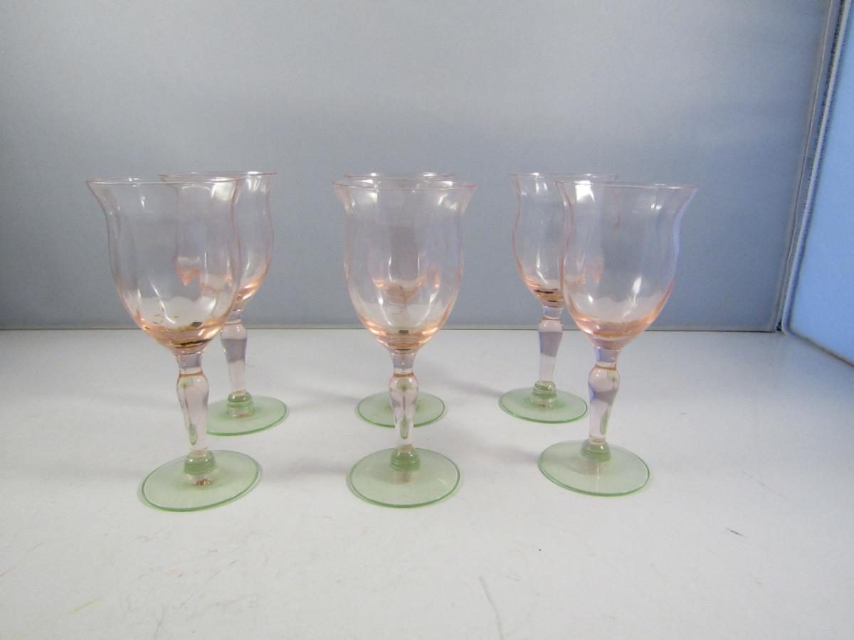 Set of Six Watermelon Glass Stemmed Wine Goblets- Possibly Tiffen