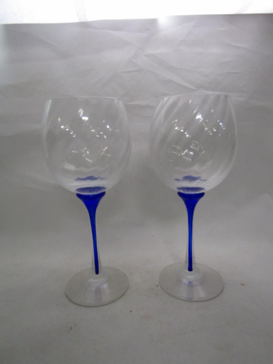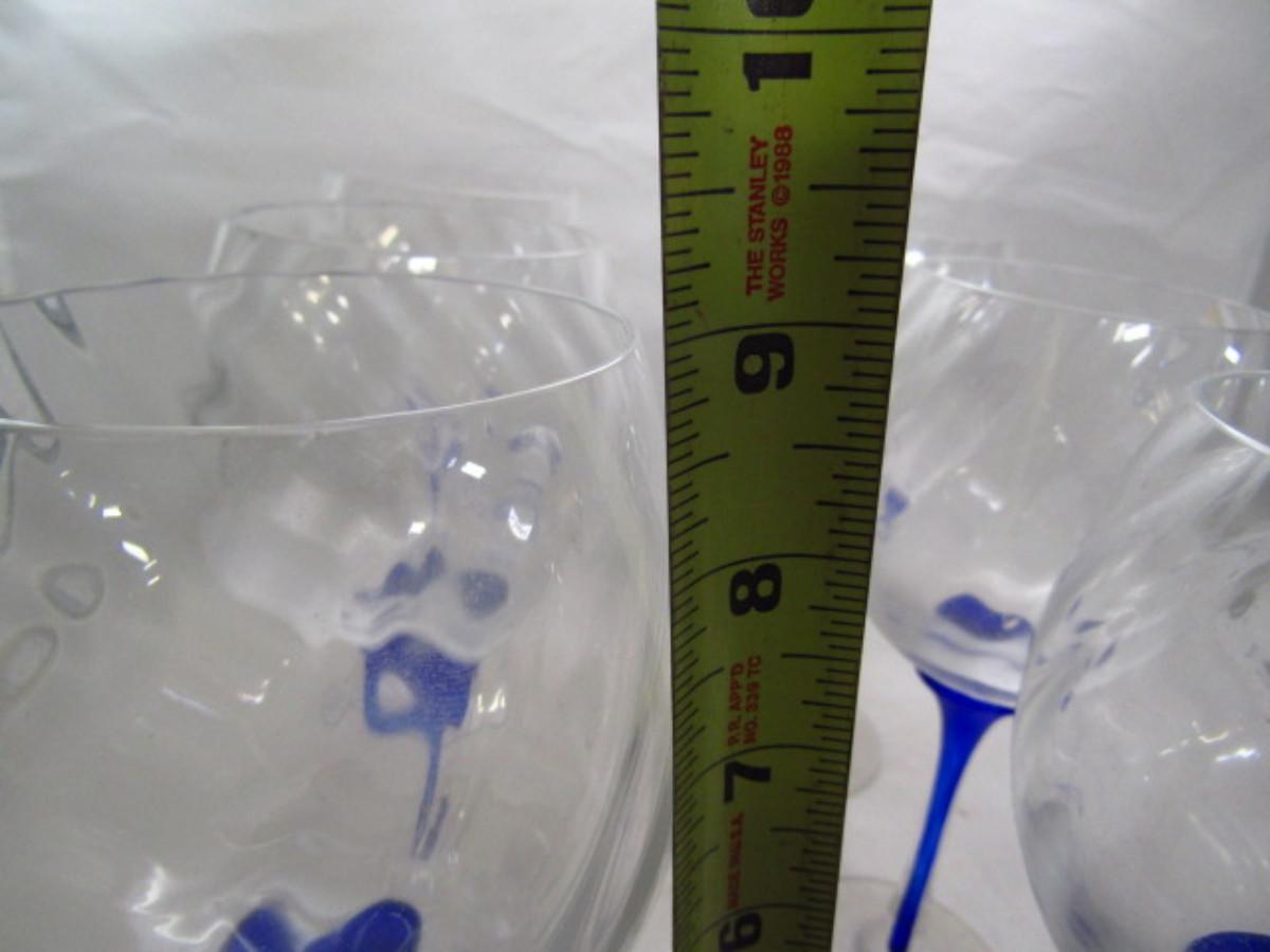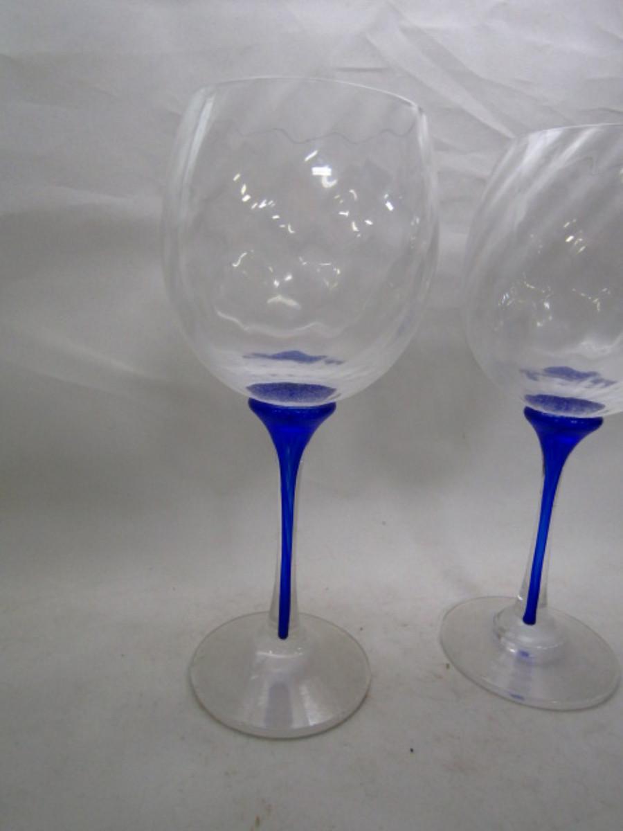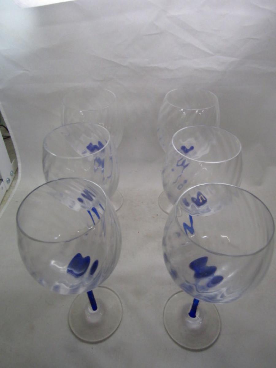 Set of Six Wine Glasses- Swirl Pattern with Cobalt Blue Stem