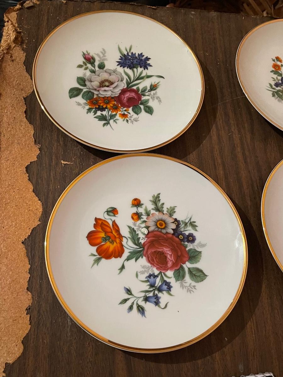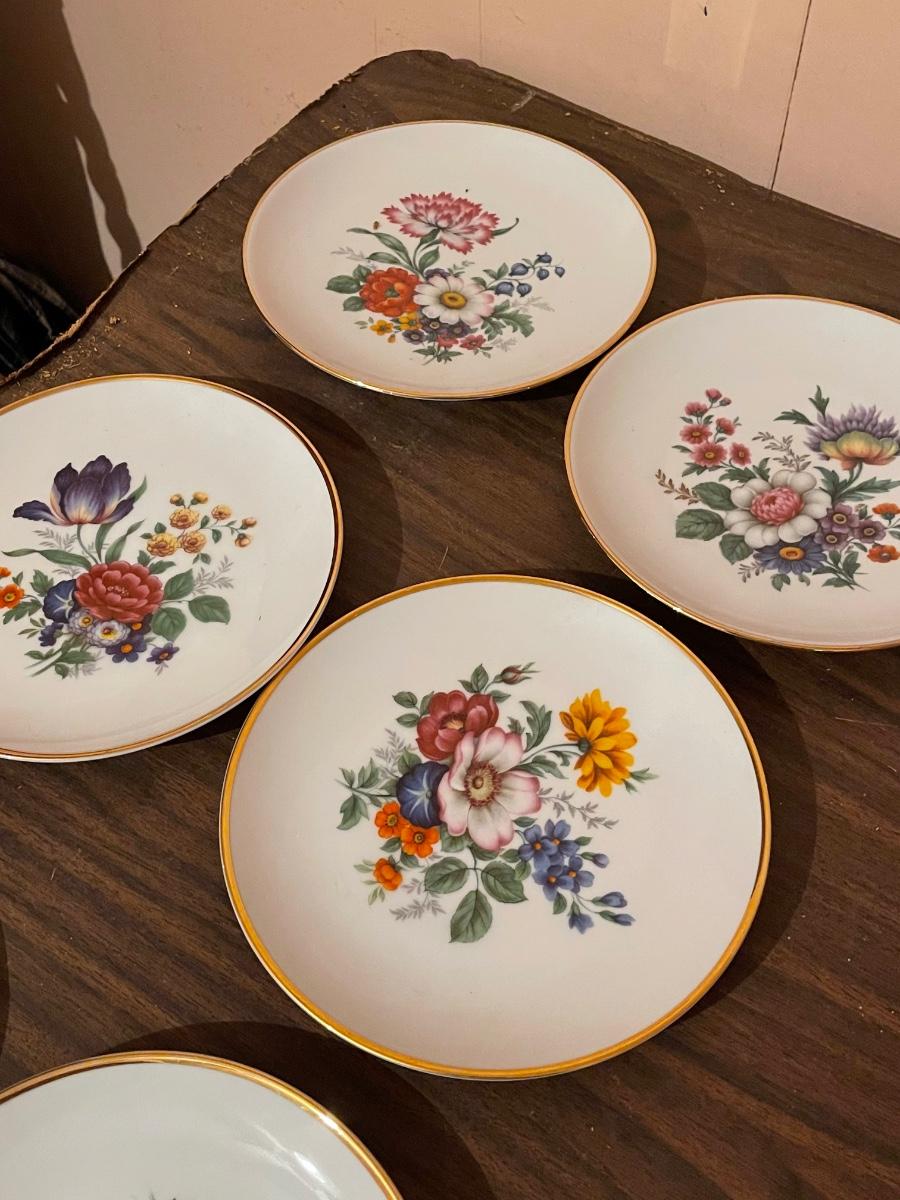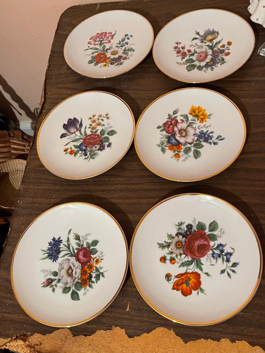 Set of Six Woodbury Woodware Hand Turned Floral Plates