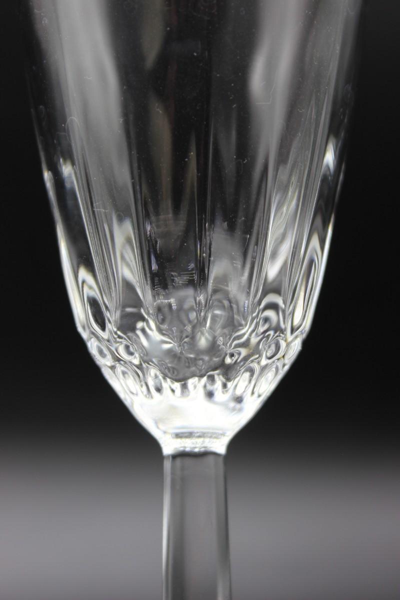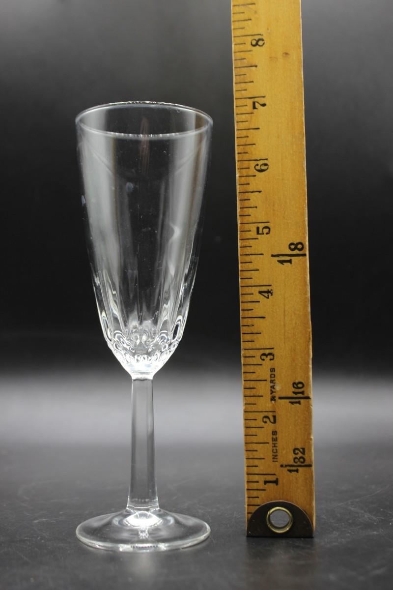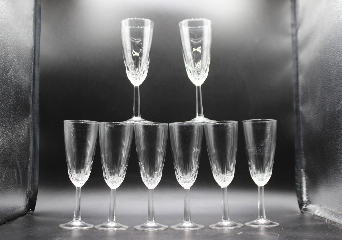 Set of Slim Clear Crystal Glass Champagne Wine Drinking Glasses, there are no cracks or chips to any of the drinking glasses and is in good useable condition. The lot comes with 8 glasses, check pictures for more details and for sizing.