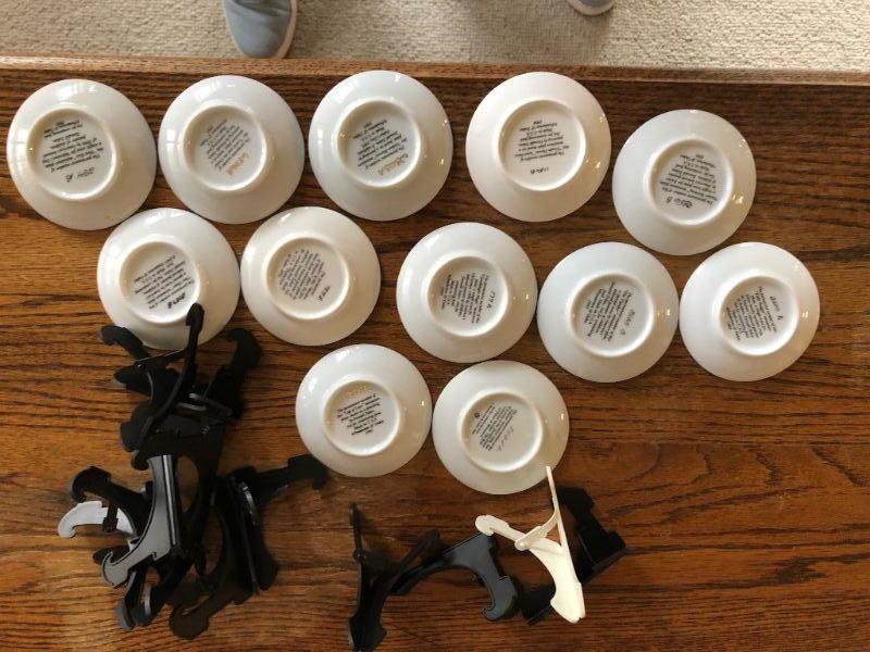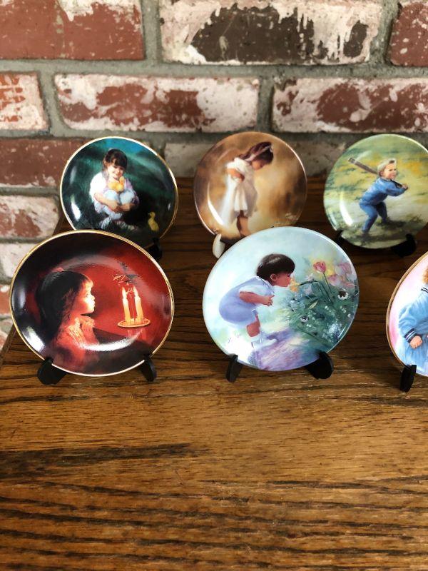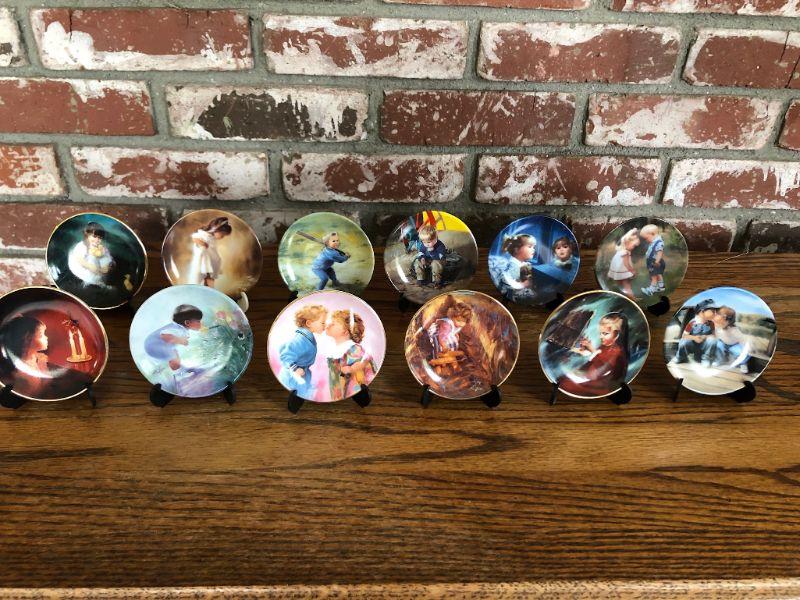 Set of 12 Pemberton & Oakes small collector's plates. Plates feature beloved artist of children Donald Zolan. Numbered on the backs. Good Condition. About 3" size.