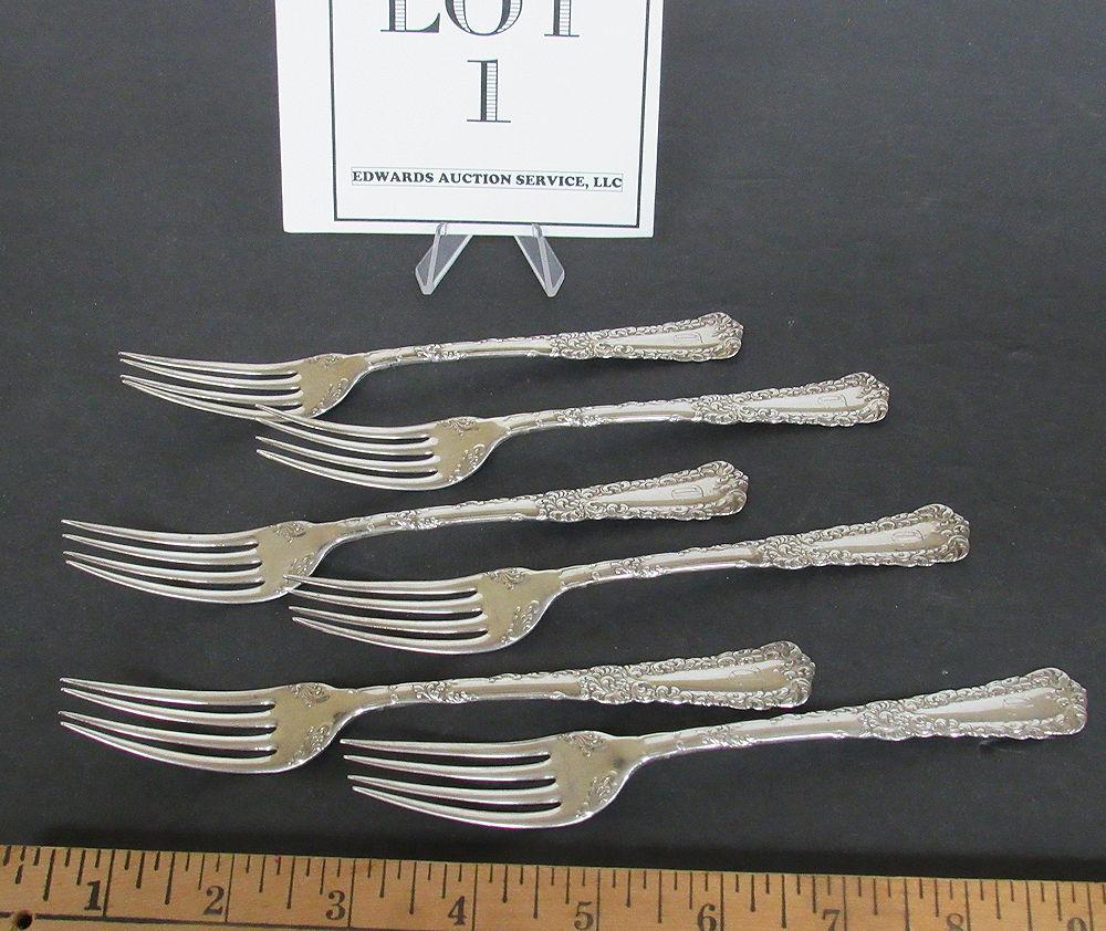 Nice quality, heavy. The 6 forks weigh 6.9 ounces total. Marked Sterling and 925/1000. Have a D monogram on handle. Beautiful condition, minor use marks.