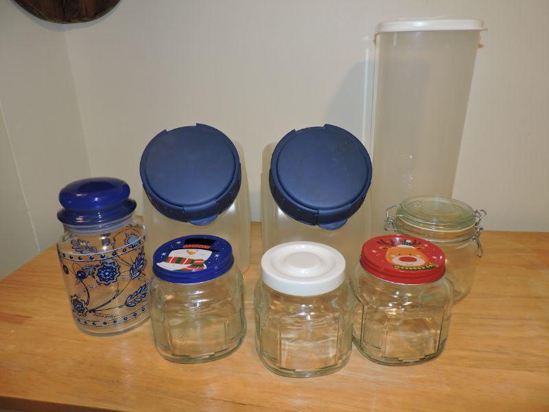 Set of 8 storage containers with lids. **Please read Terms and Conditions before placing a bid. Pick up is Thursday, August 15, 2019 from 4pm to 7pm or Sunday, August 18 from 11am-2pm in Mullica Hill. All sales are final. All sales are as is, where is. Please review all photos. Any props included in photos are not included in listing. All measurements are approximate.