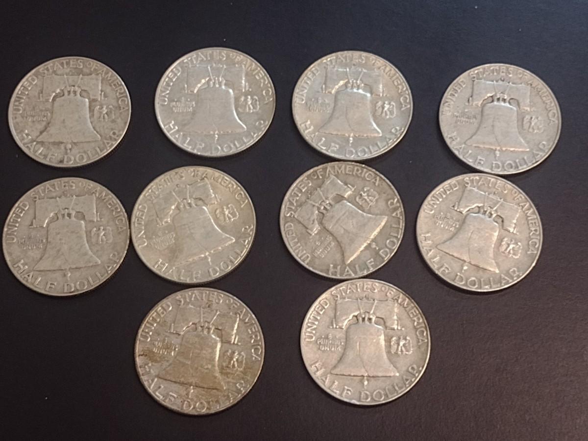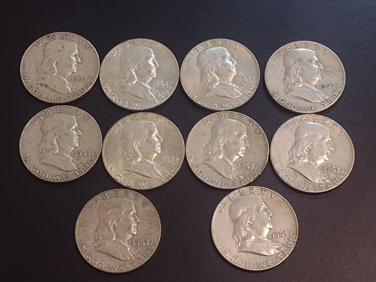 Set of Ten 1963-D U.S. Mint Franklin Silver Half Dollars Circulated (36)