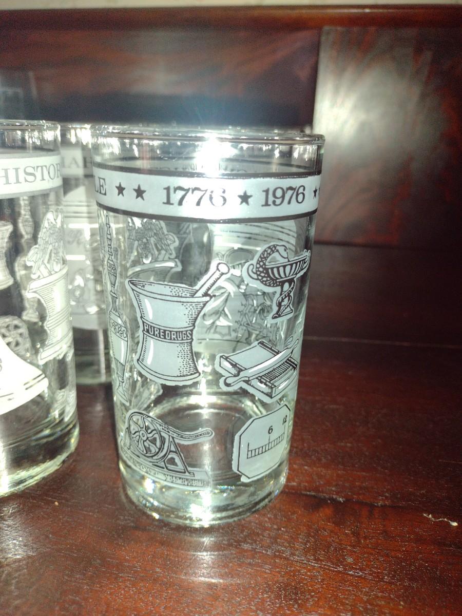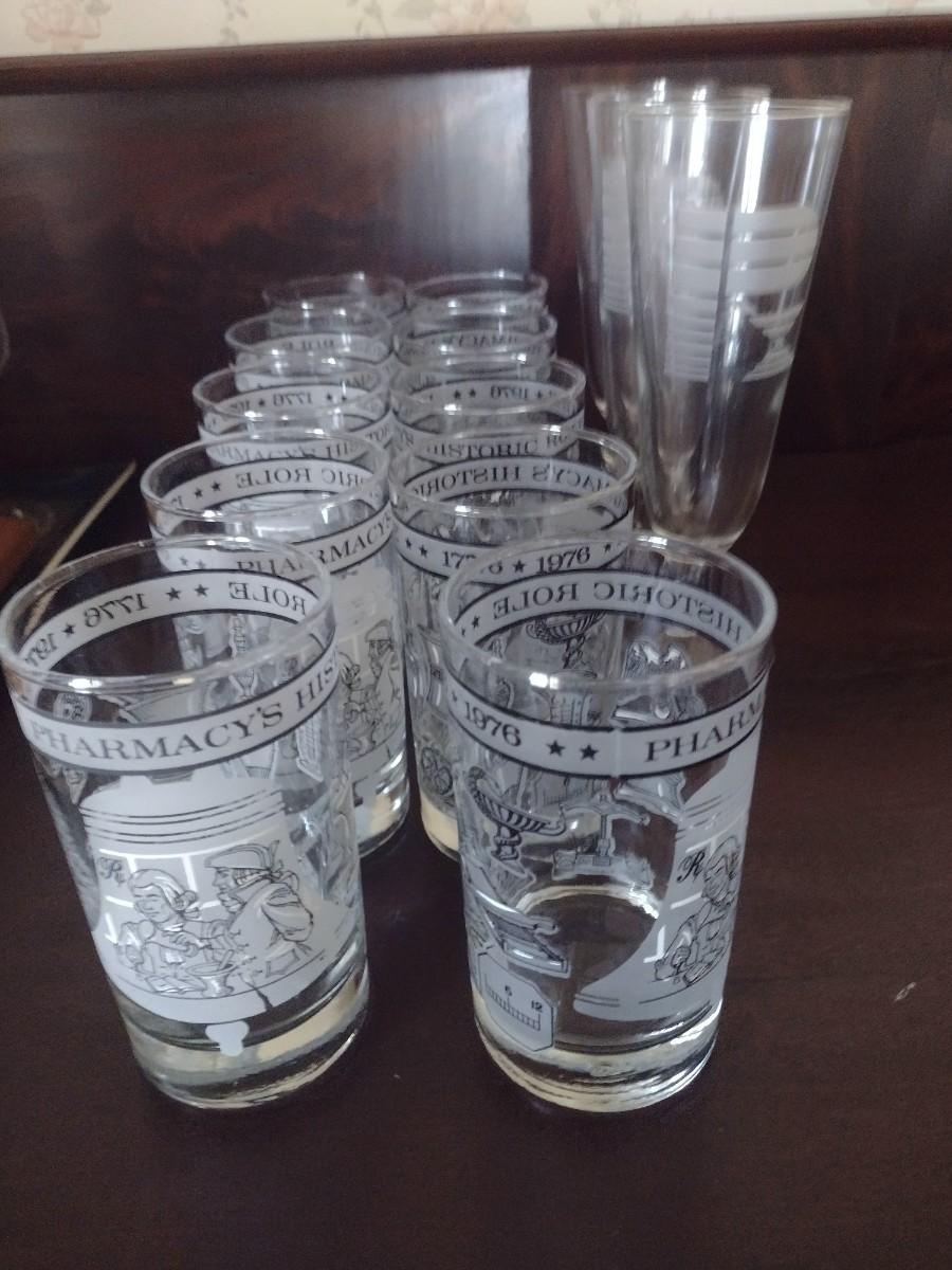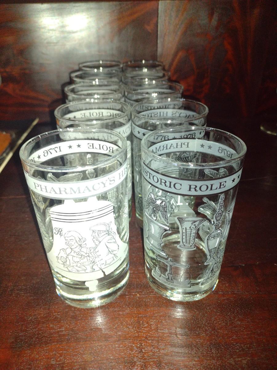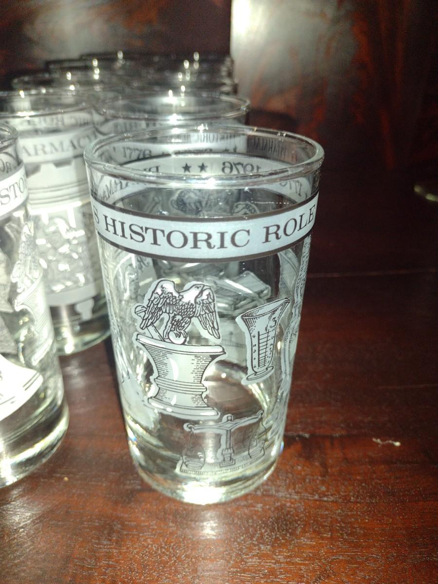 Set of Ten Painted Drinking Glass Commemorating Pharmacy's Historic Role