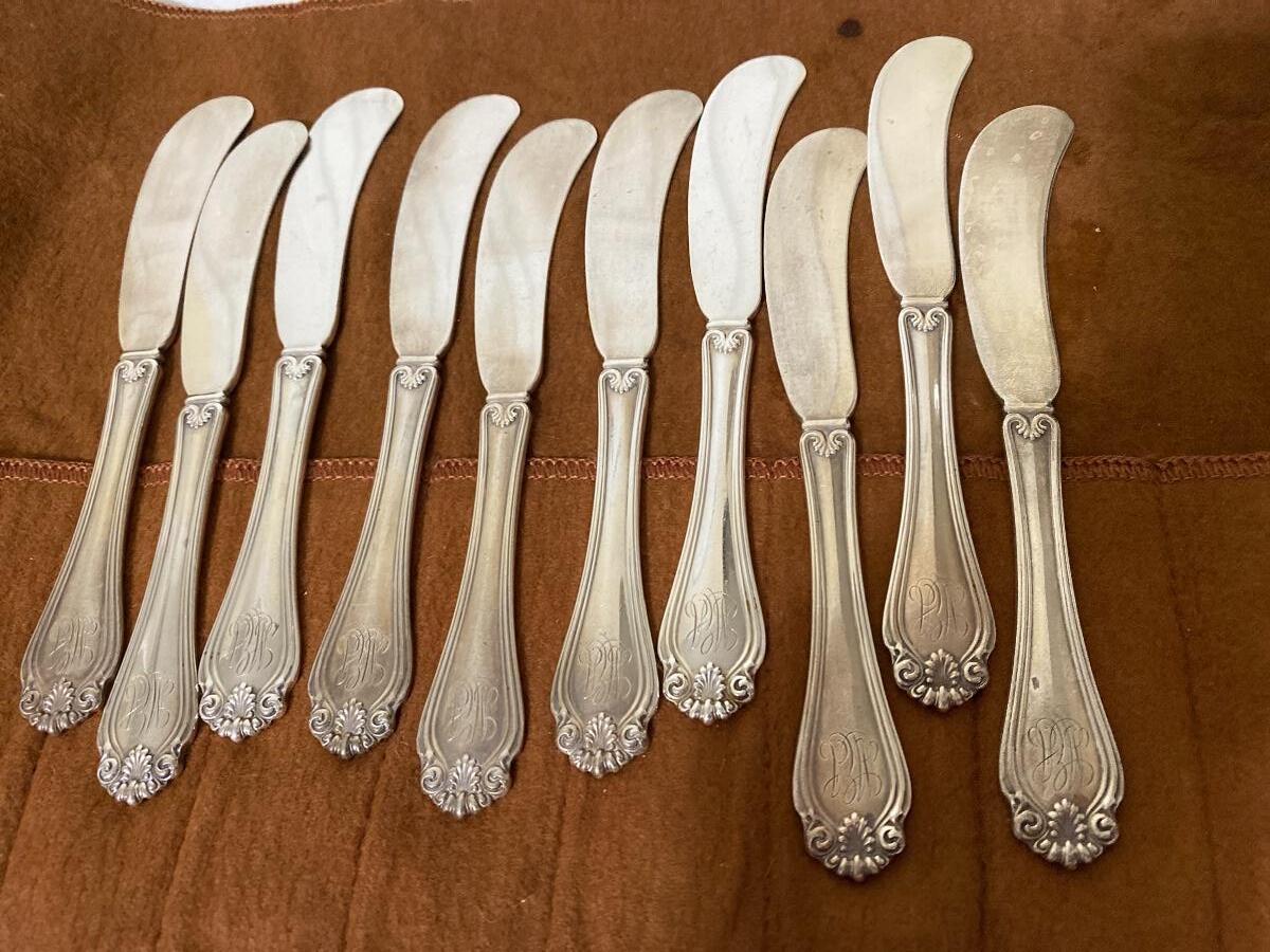 Set of Ten Sterling Silver JE Caldwell Bread and Butter Knives