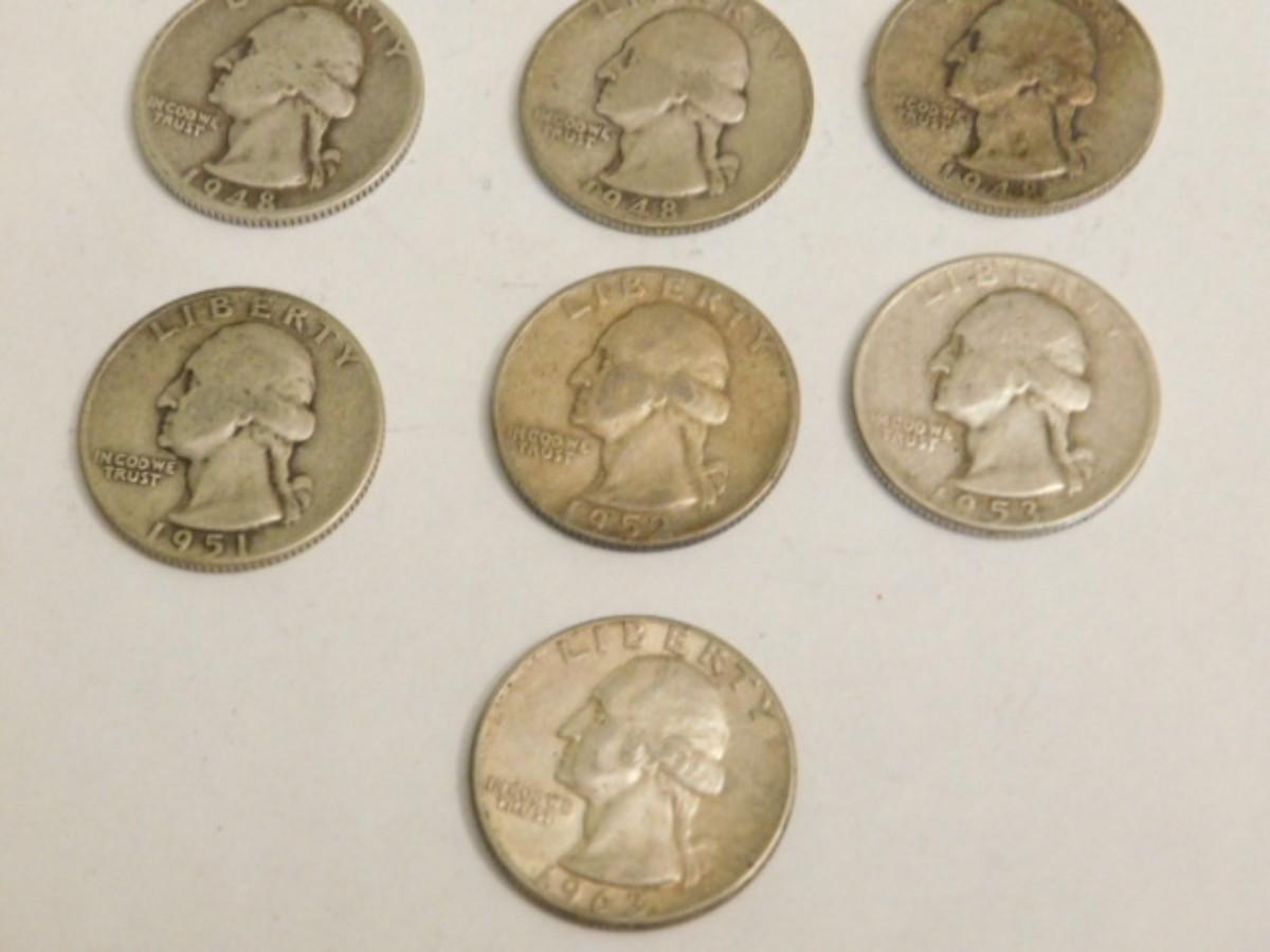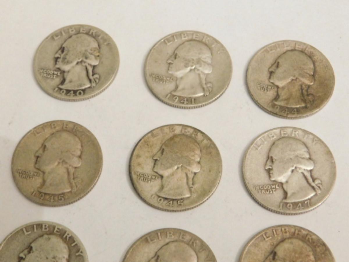 Set of Thirteen Washington US Silver Content Quarters Various Dates from 1940 to 1962