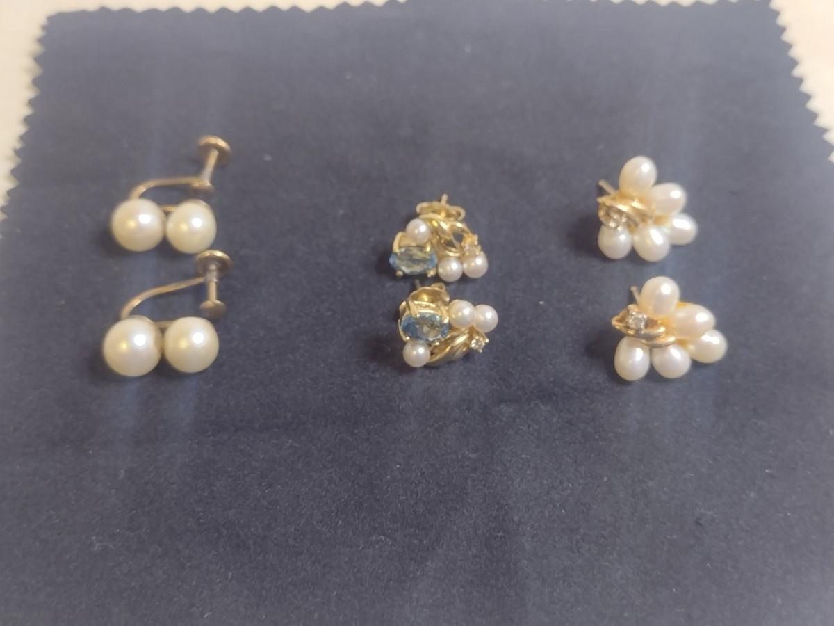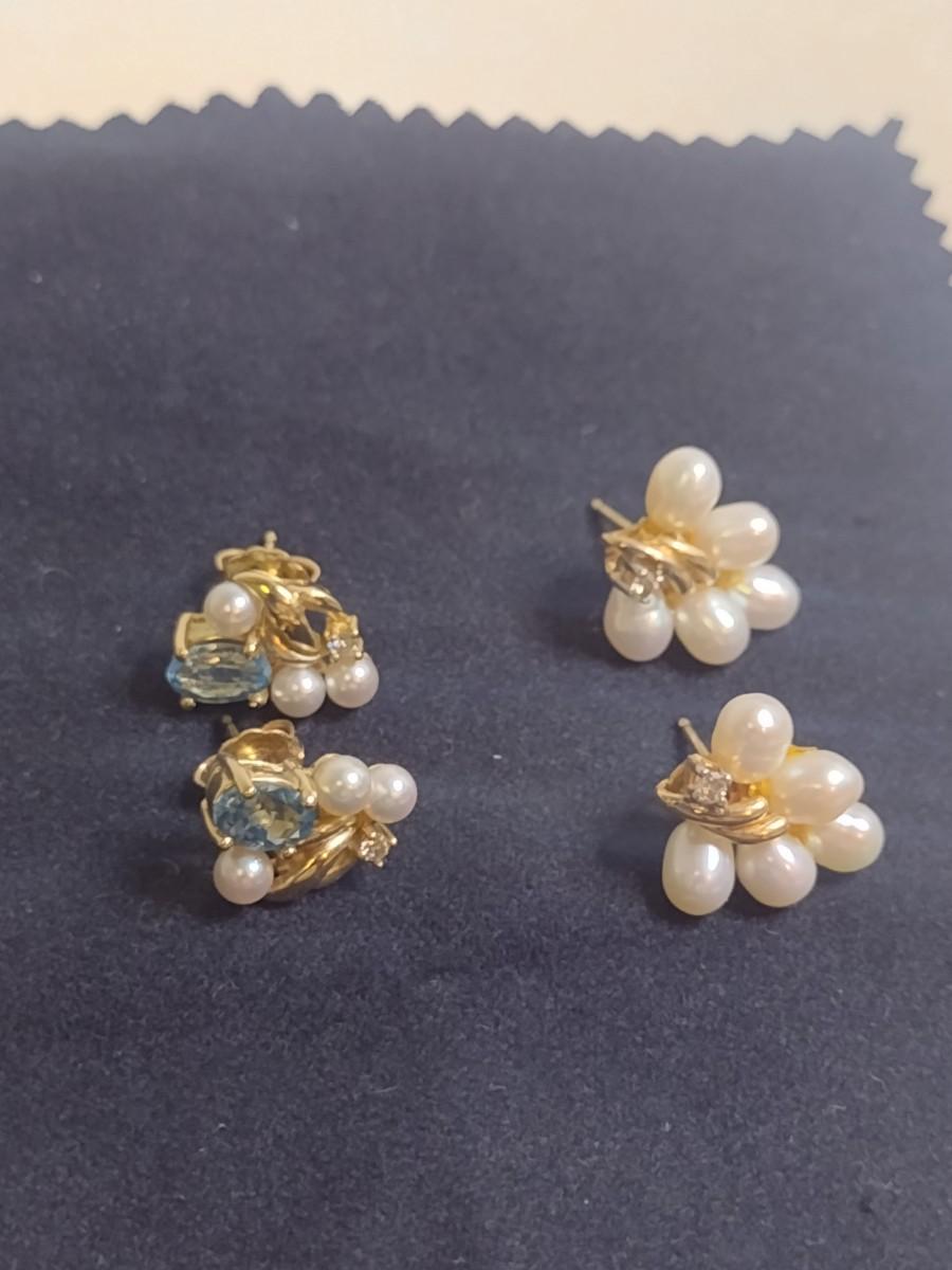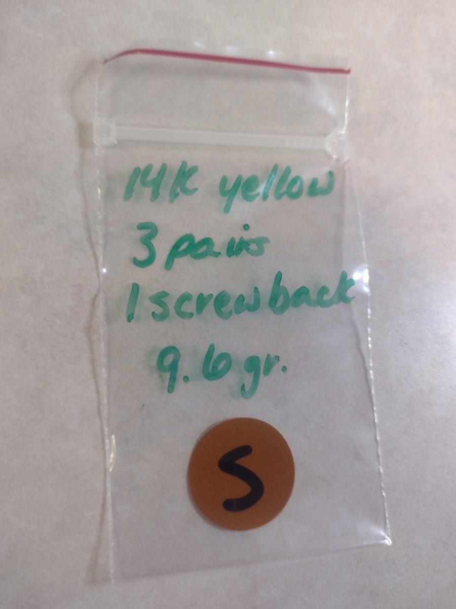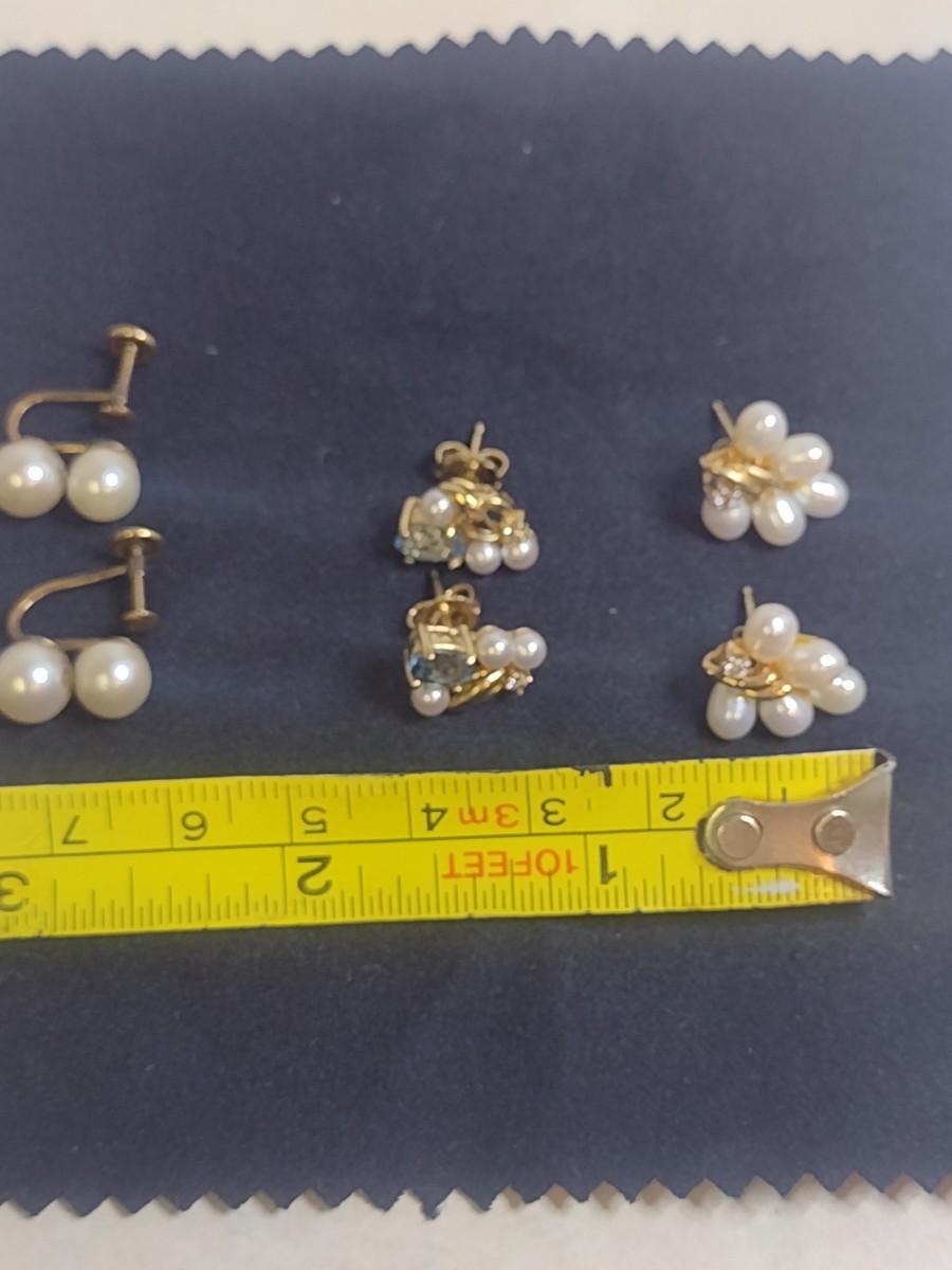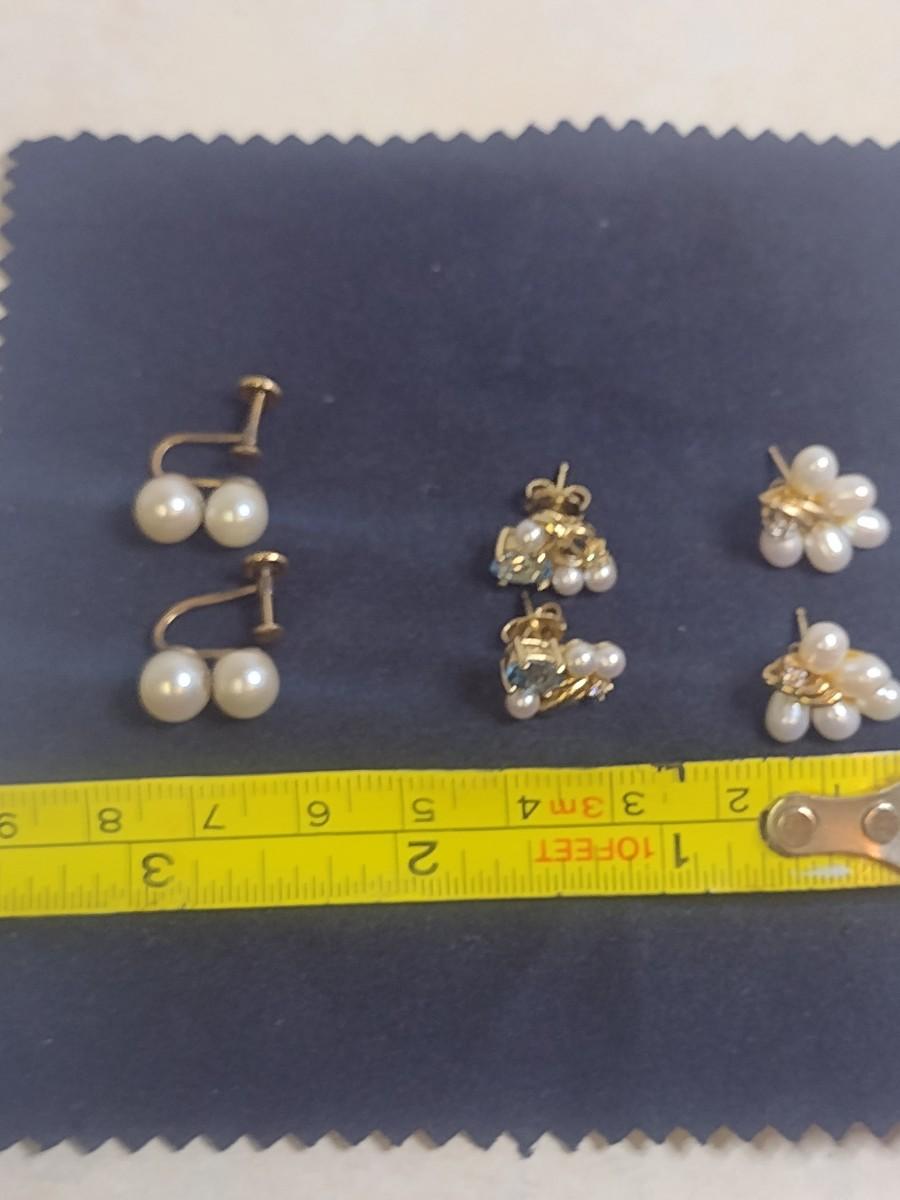 Set of Three 14K Yellow Gold and Pearl Earrings 9.6 Total Weight grams (#5). Items are a mix of post and screw back earrings- please see all pictures. A 6.75% NC sales tax will be added to the jewelry invoice amount at the end of the sale. Coins are exempt from state sales tax.