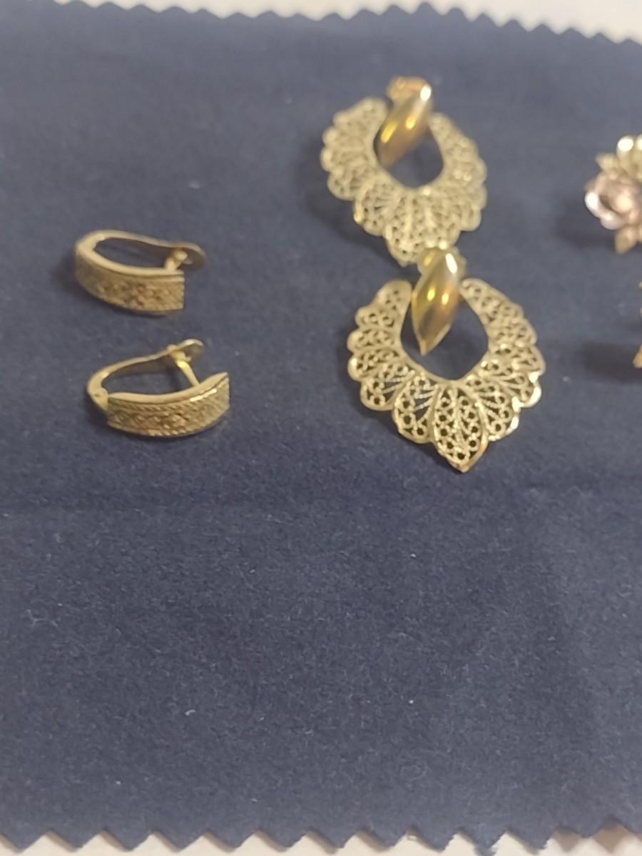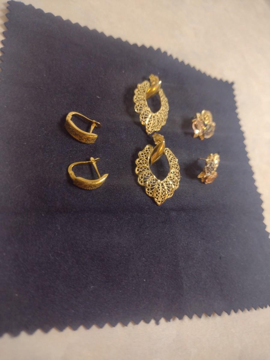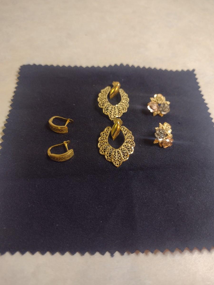 Set of Three 14K Gold Post Earrings- Approx Total Weight 6.9 Grams (#6)
