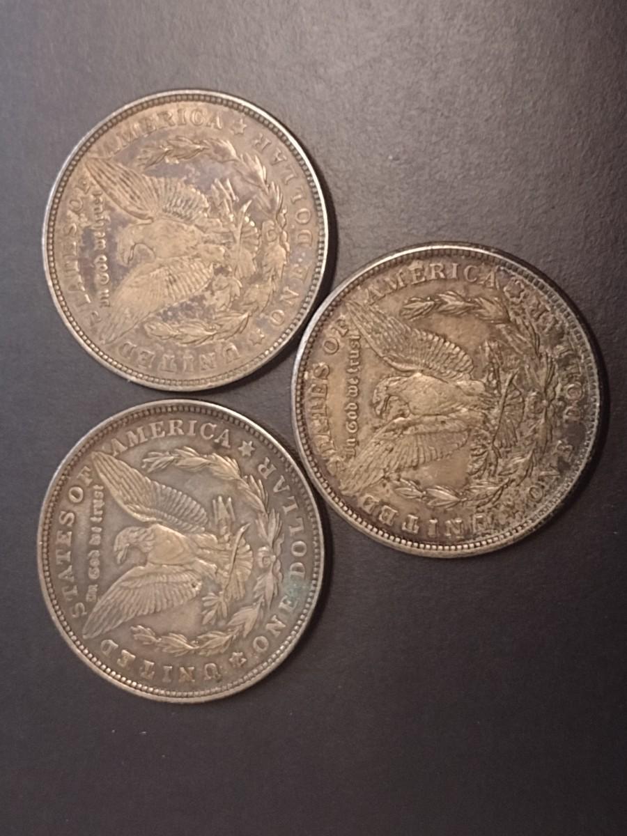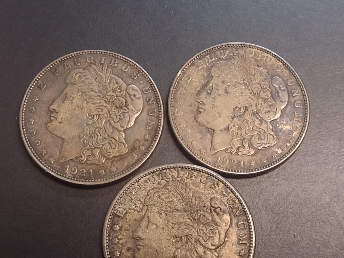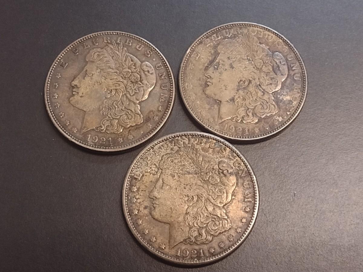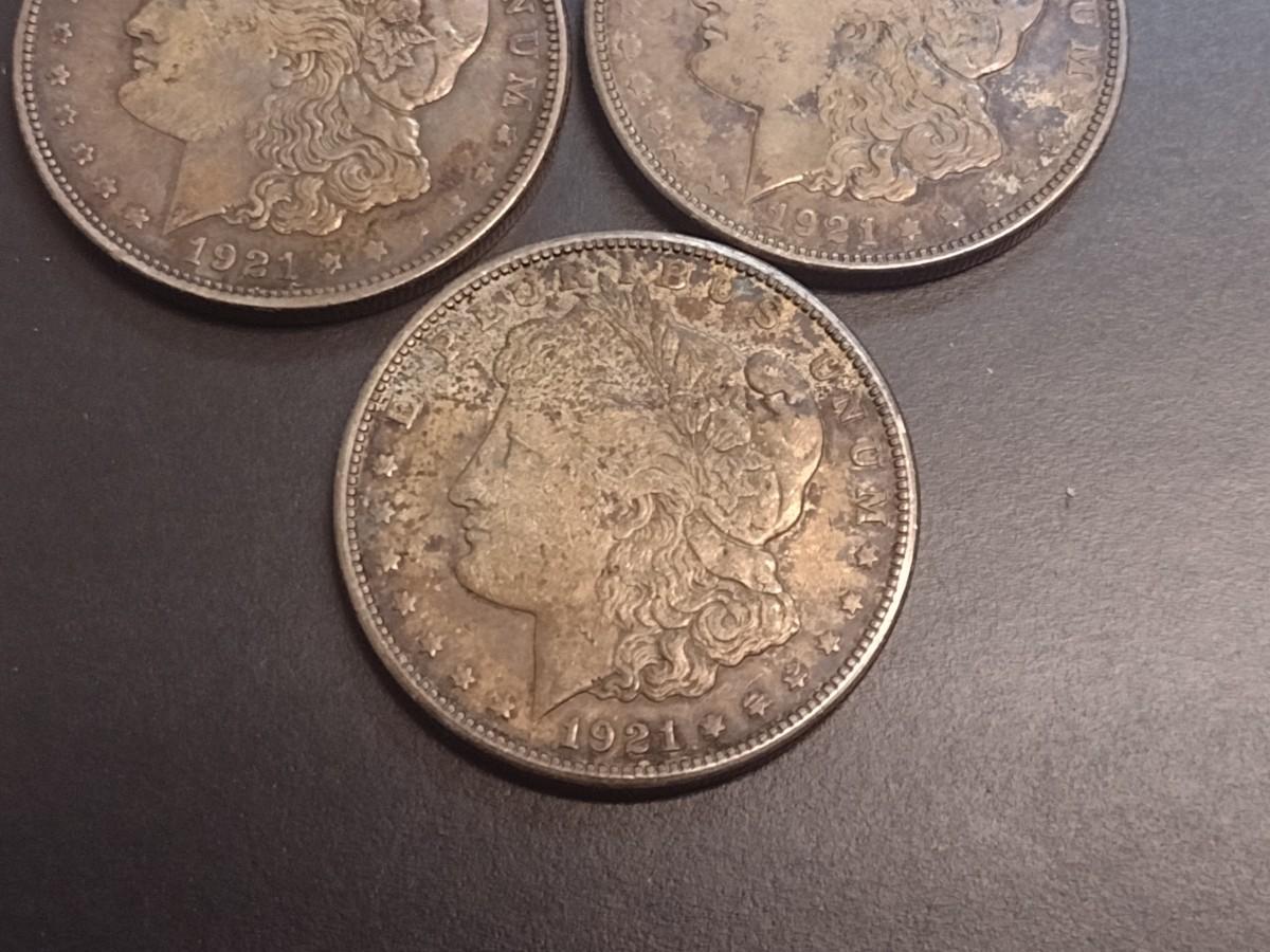 Set of Three 1921 U. S. Mint Morgan Silver Dollars Circulated (1)