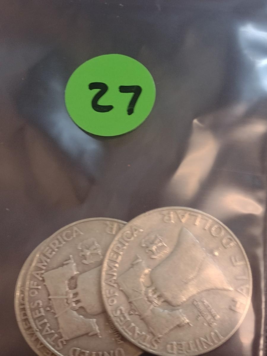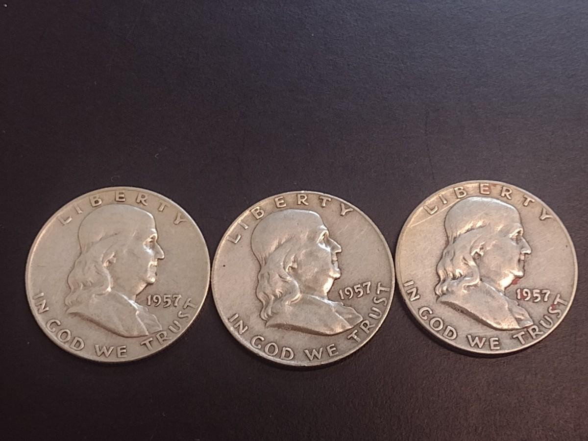 Set of Three 1957-D, U.S. Mint Franklin Silver Half Dollars Circulated (27)