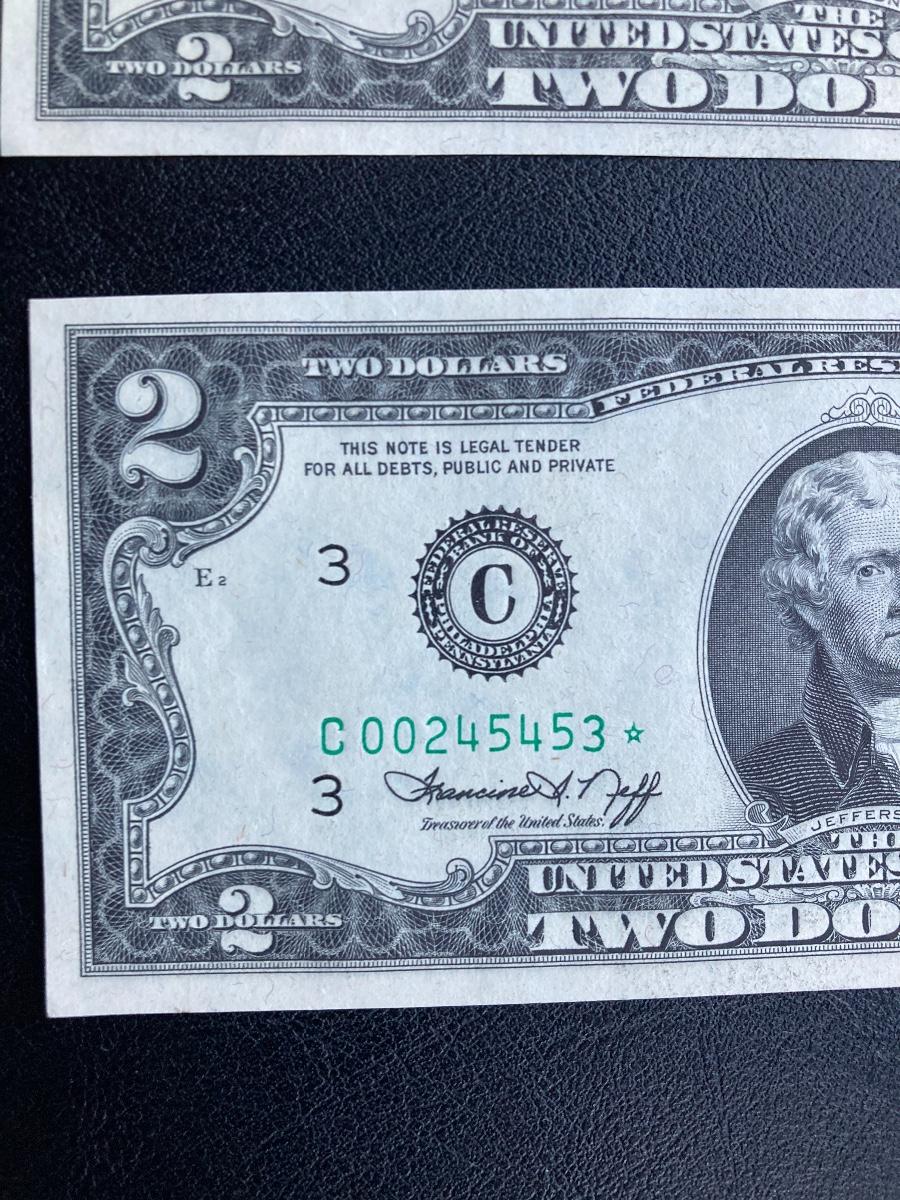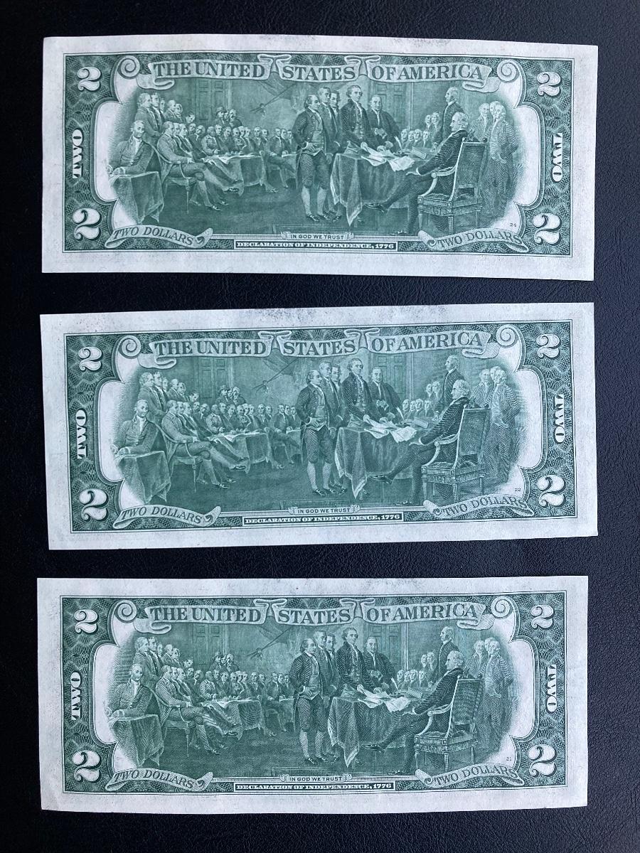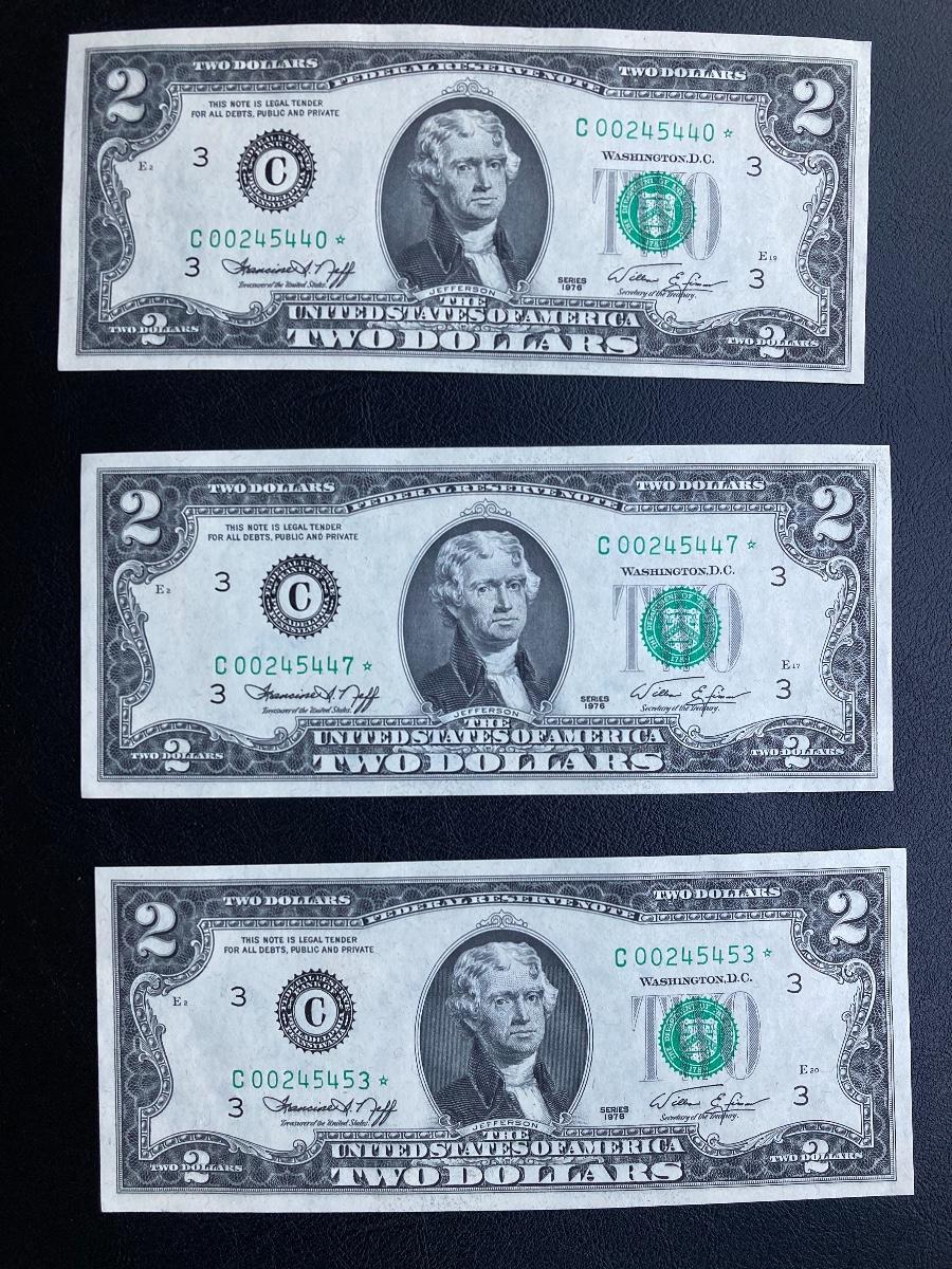 Set of three 1976 $2 dollar federal STAR note bills uncirculated. Lot A26