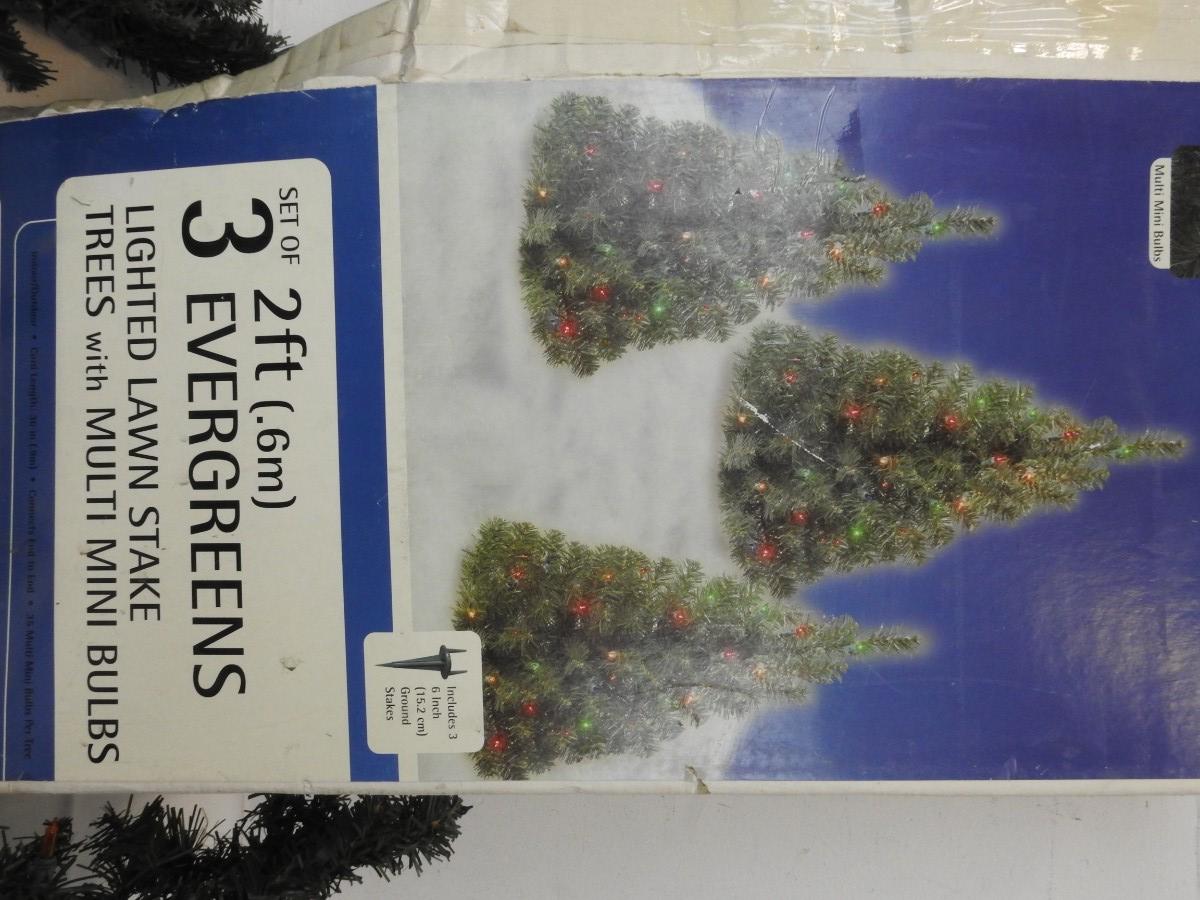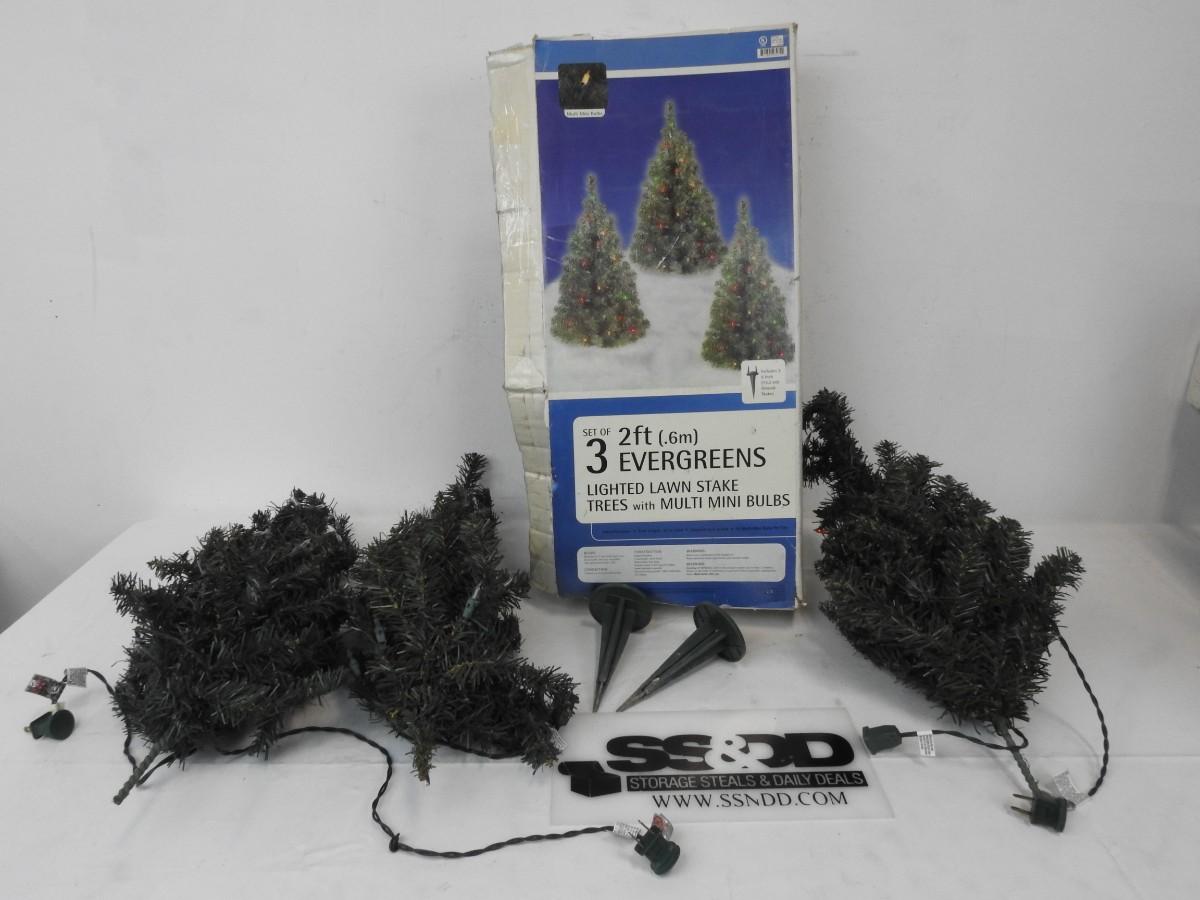 Set of Three 2 Foot Evergreen Lighted Lawn Stake Trees (Missing 1 ground stake)