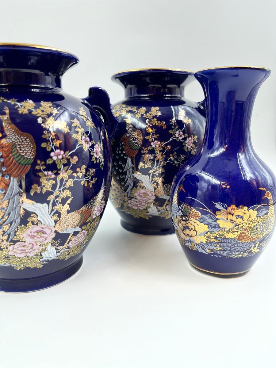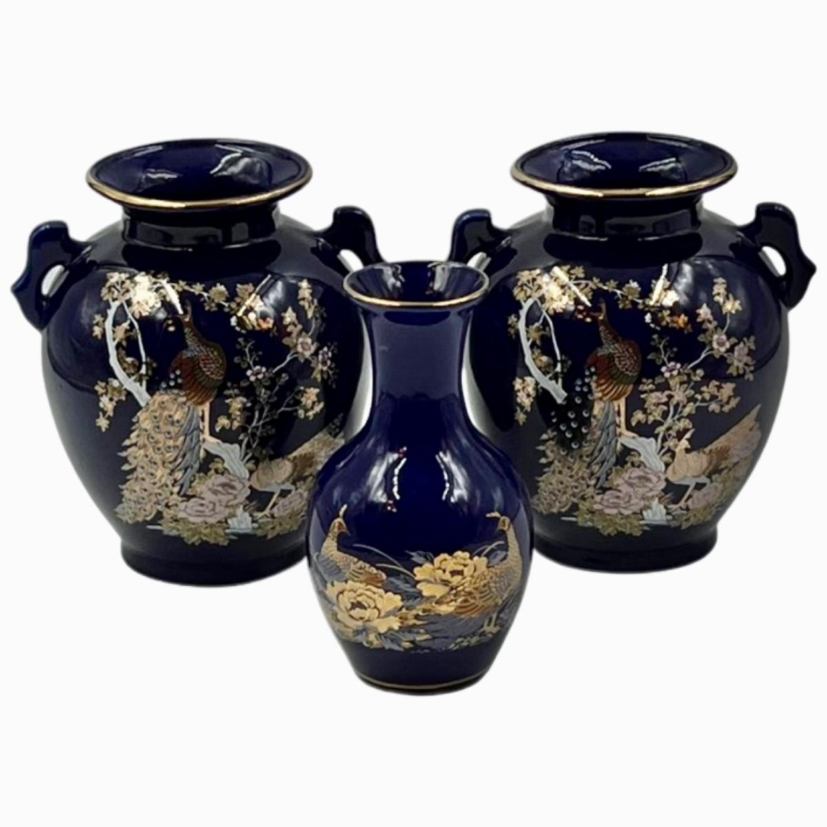 Set Of Three (3) ~ Cobalt Blue Japanese Vases