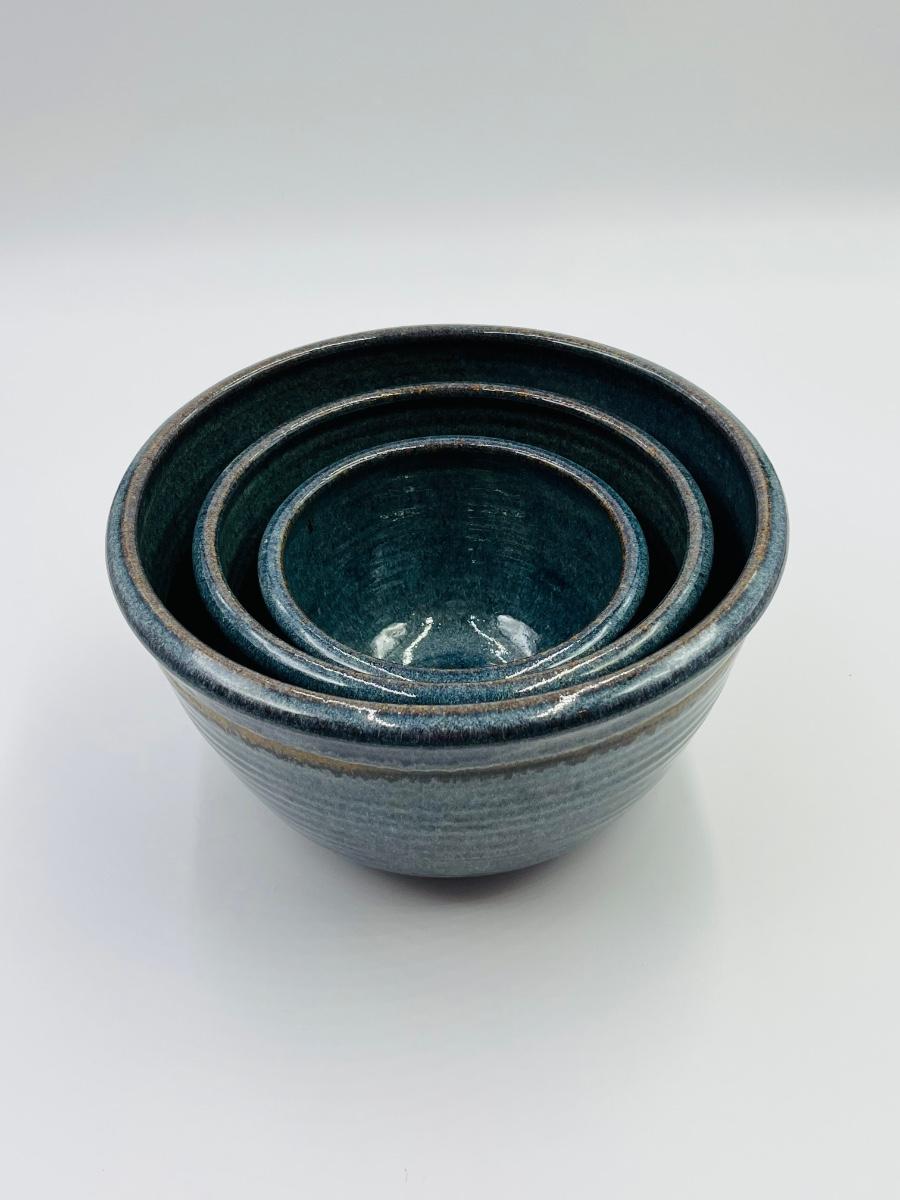 Set Of Three (3) ~ Blue Pottery Nesting Bowls