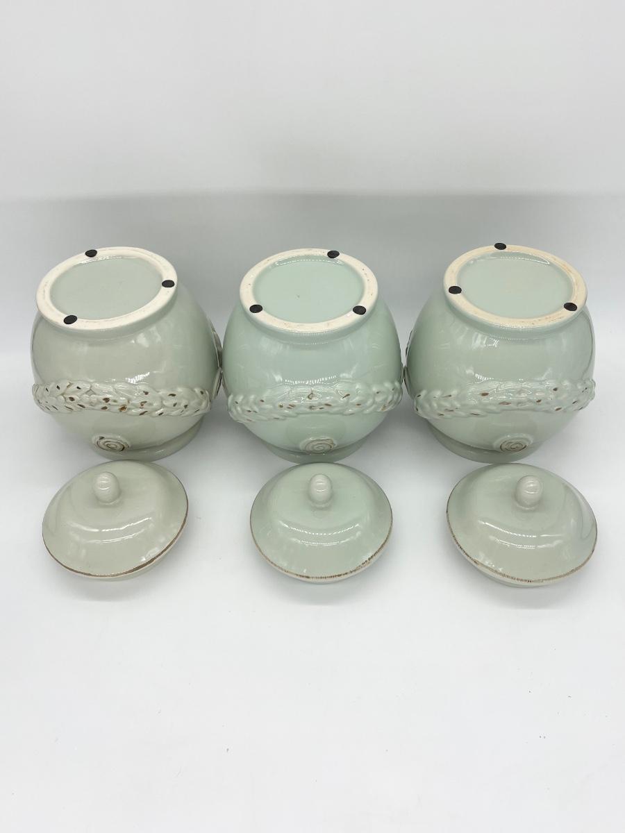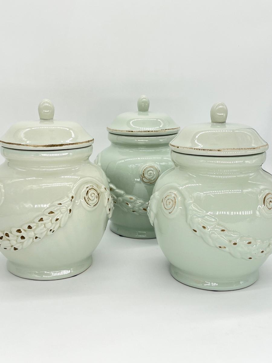 Set Of Three (3) ~ Sage Green Porcelain Jars With Lids
