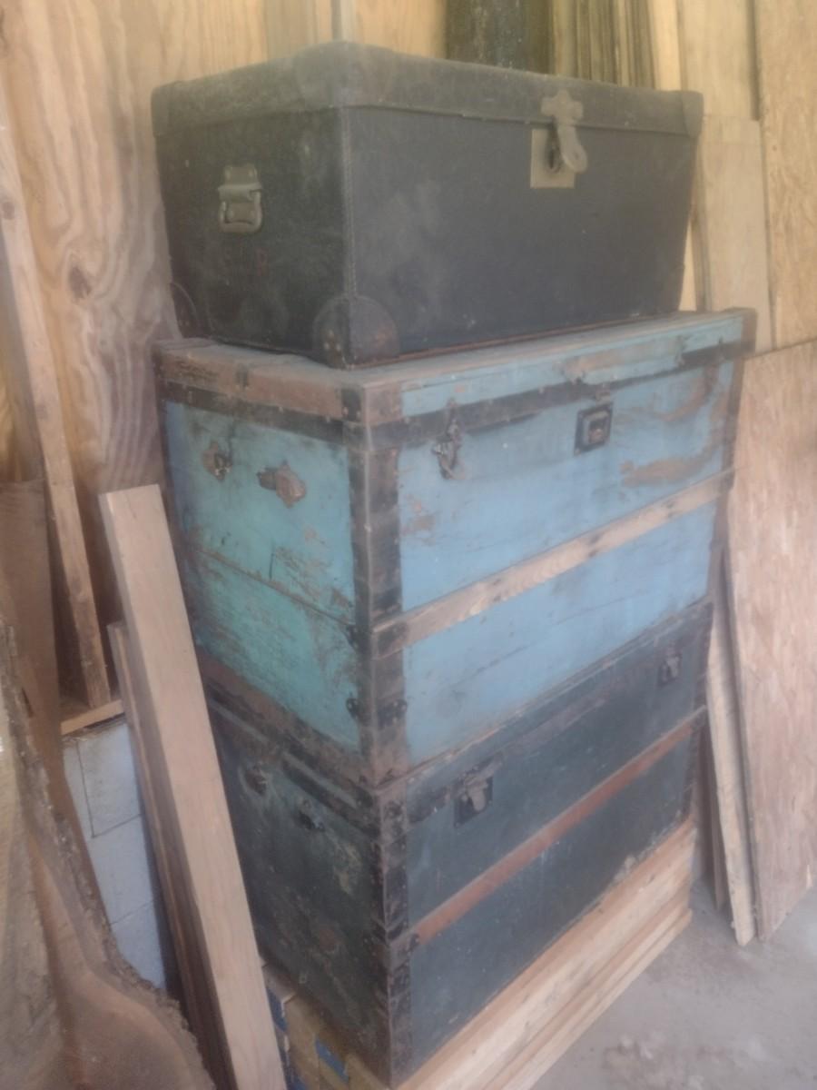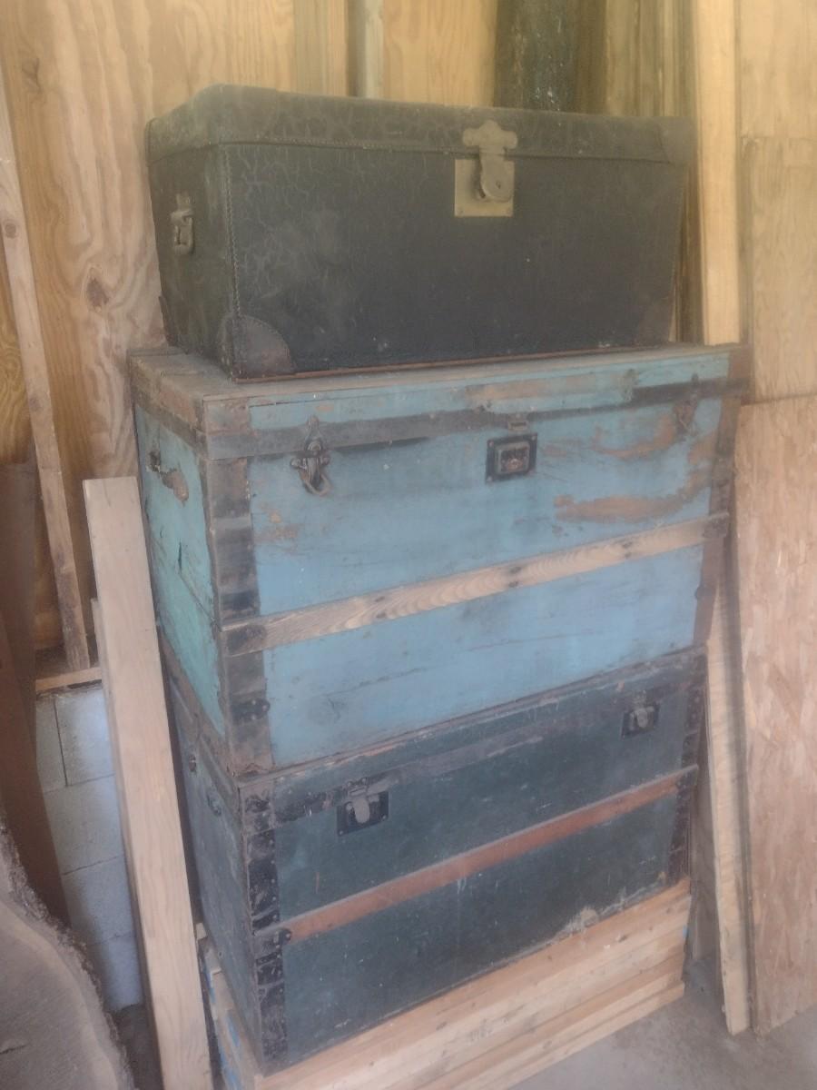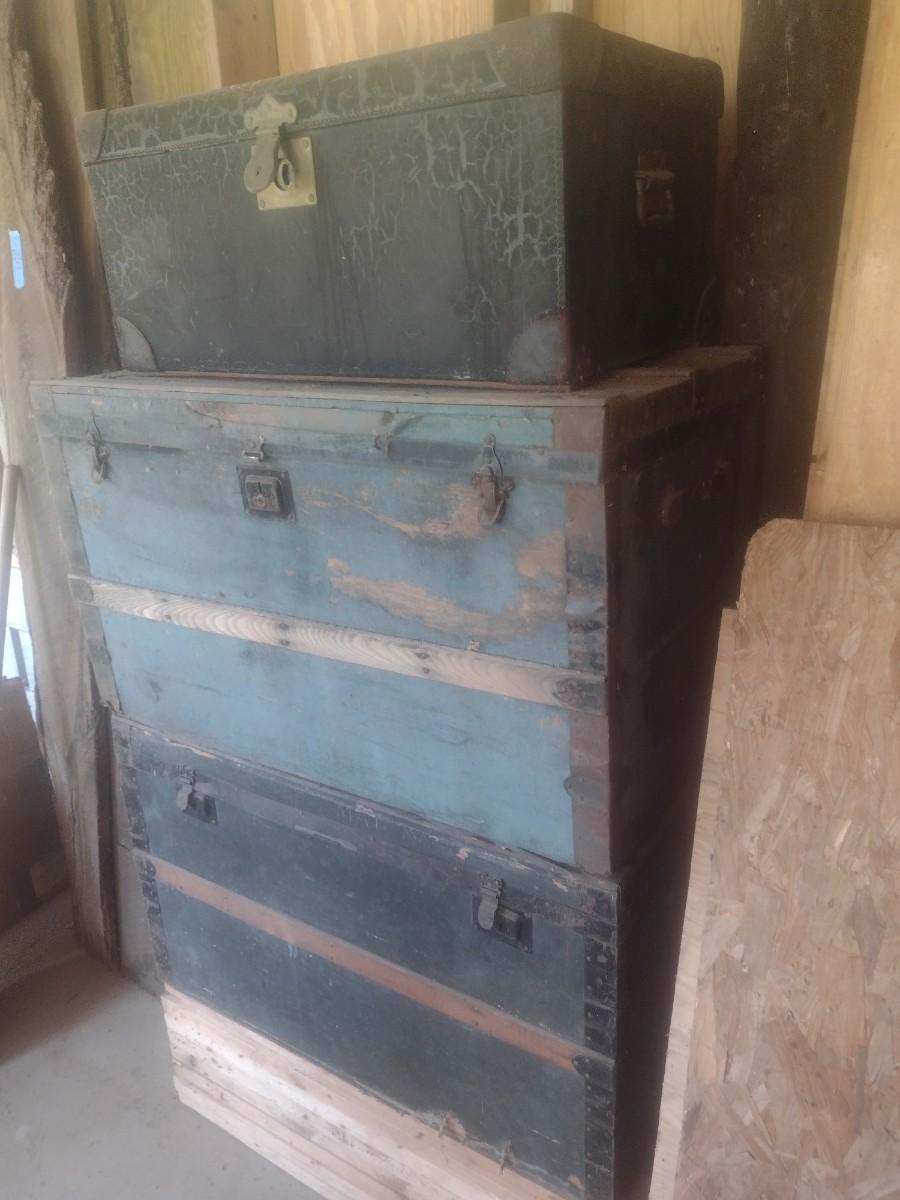 Set of Three Antique Storage Trunks