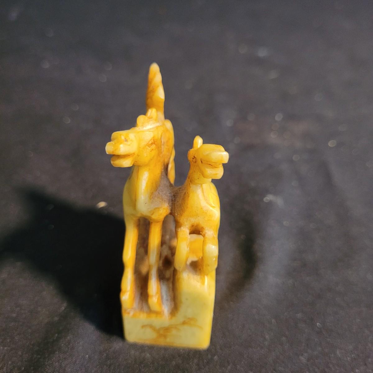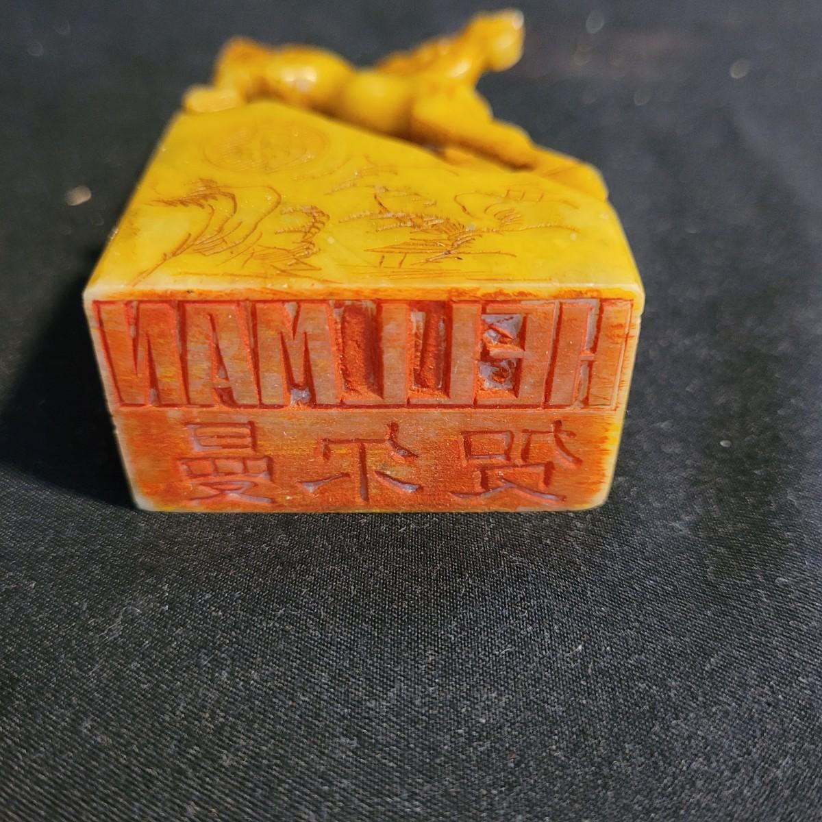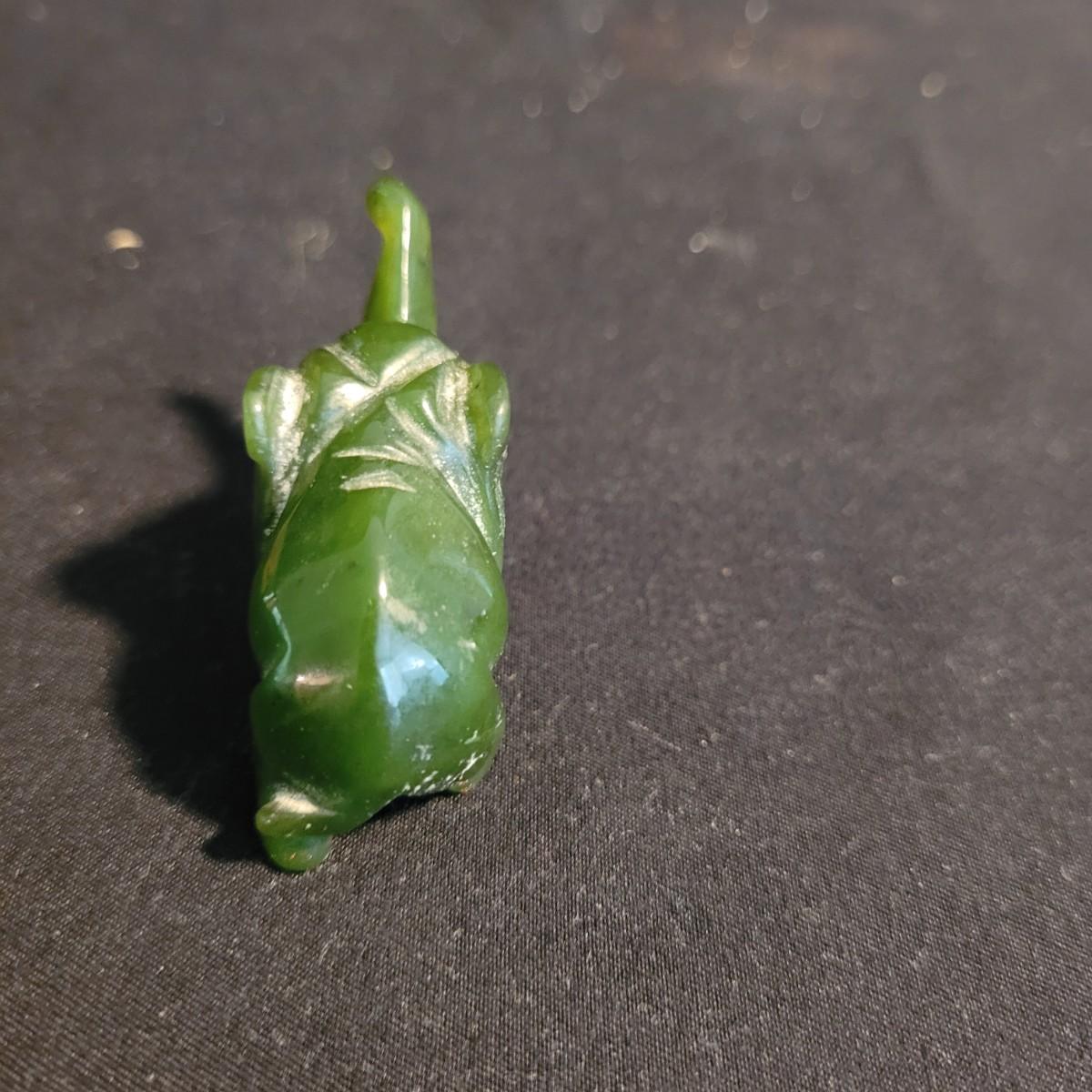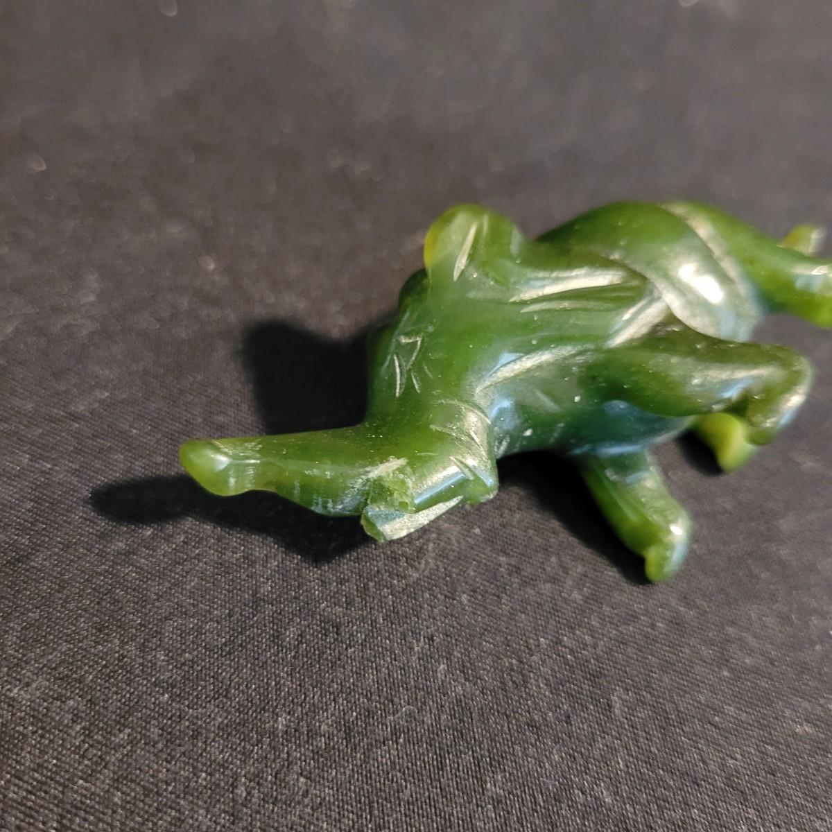 Set of three handcarved Asian stone figurines. One is possibly jade, cannot verify. Two larger figurines have engraved stamps on bottom with "Hellman" and Chinese characters. In good condition with chip at bottom corner of largest piece. Elephant in fair condition, with tusks broken off. For reference, largest figurine measures approximately 1.5"L x1.5"D x5"H. Shipping available.