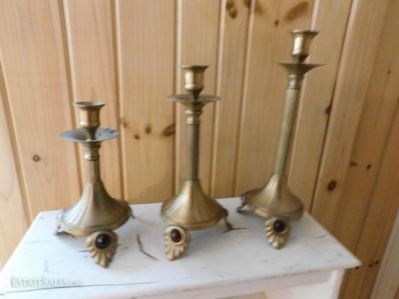 Set of Three Brass Candlesticks