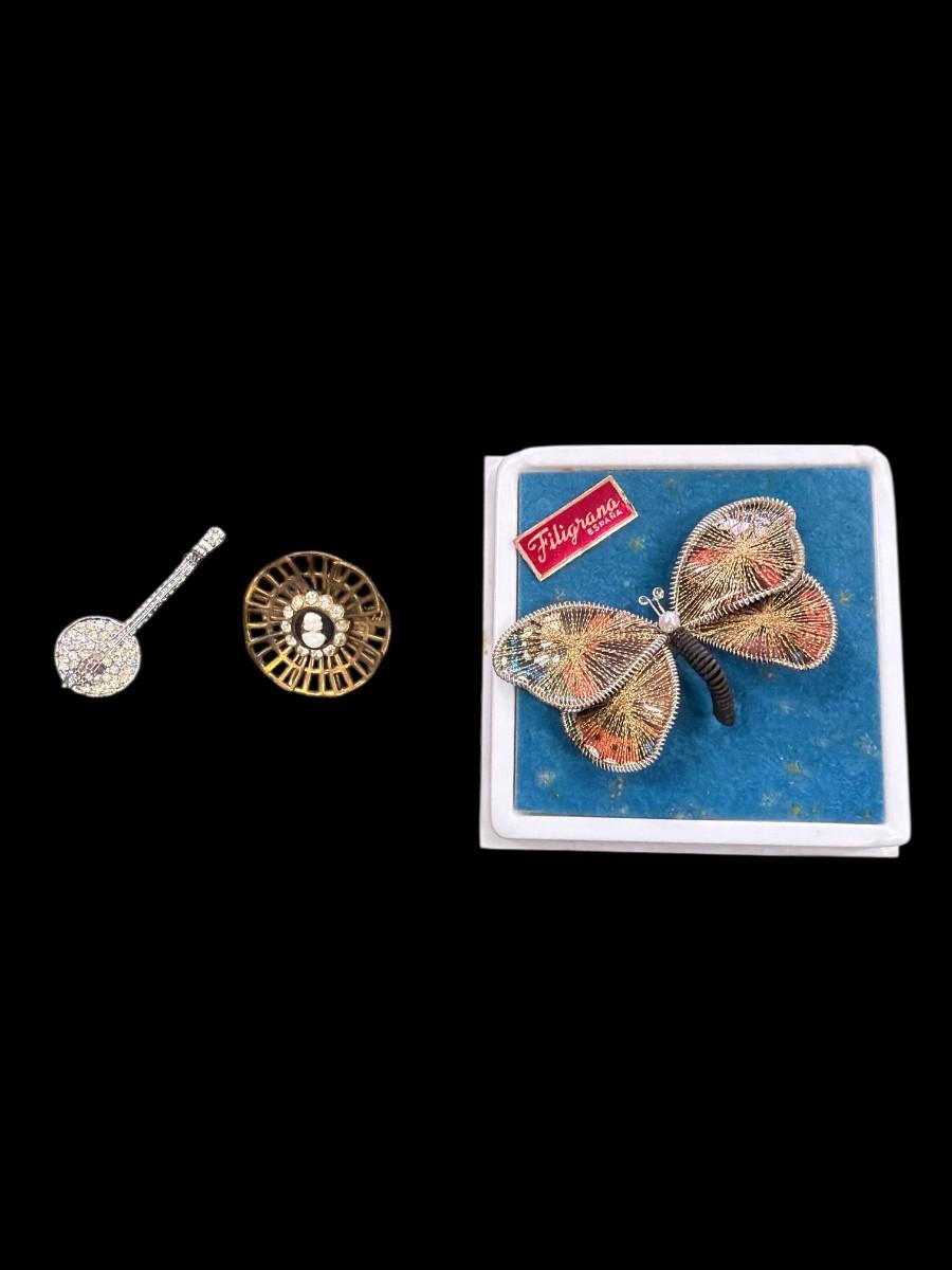 Set Of Three Brooches Banjo, Butterfly and Cameo
