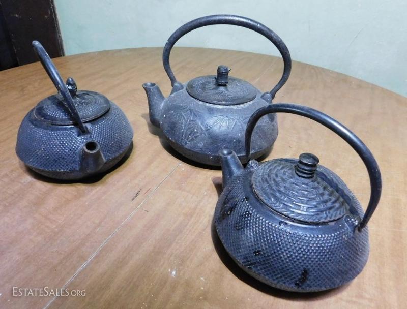 Set of Three Cast Iron Tea Kettles various sizes but all in good condition. Need cleaning.