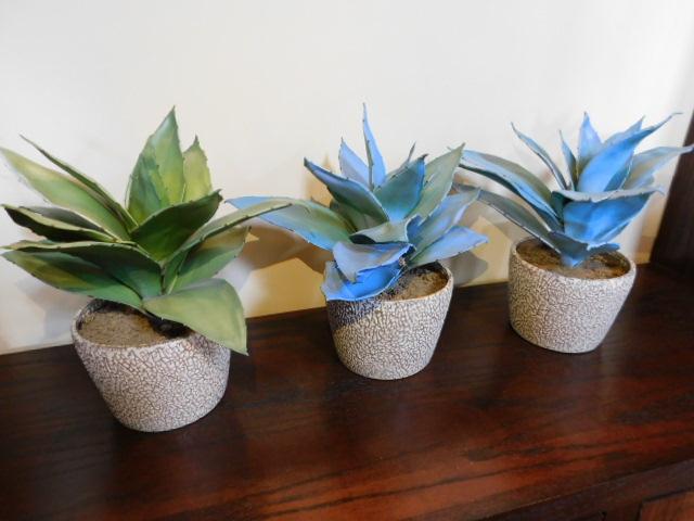 Set of Three Ceramic Planter Fake Plant Home Decor