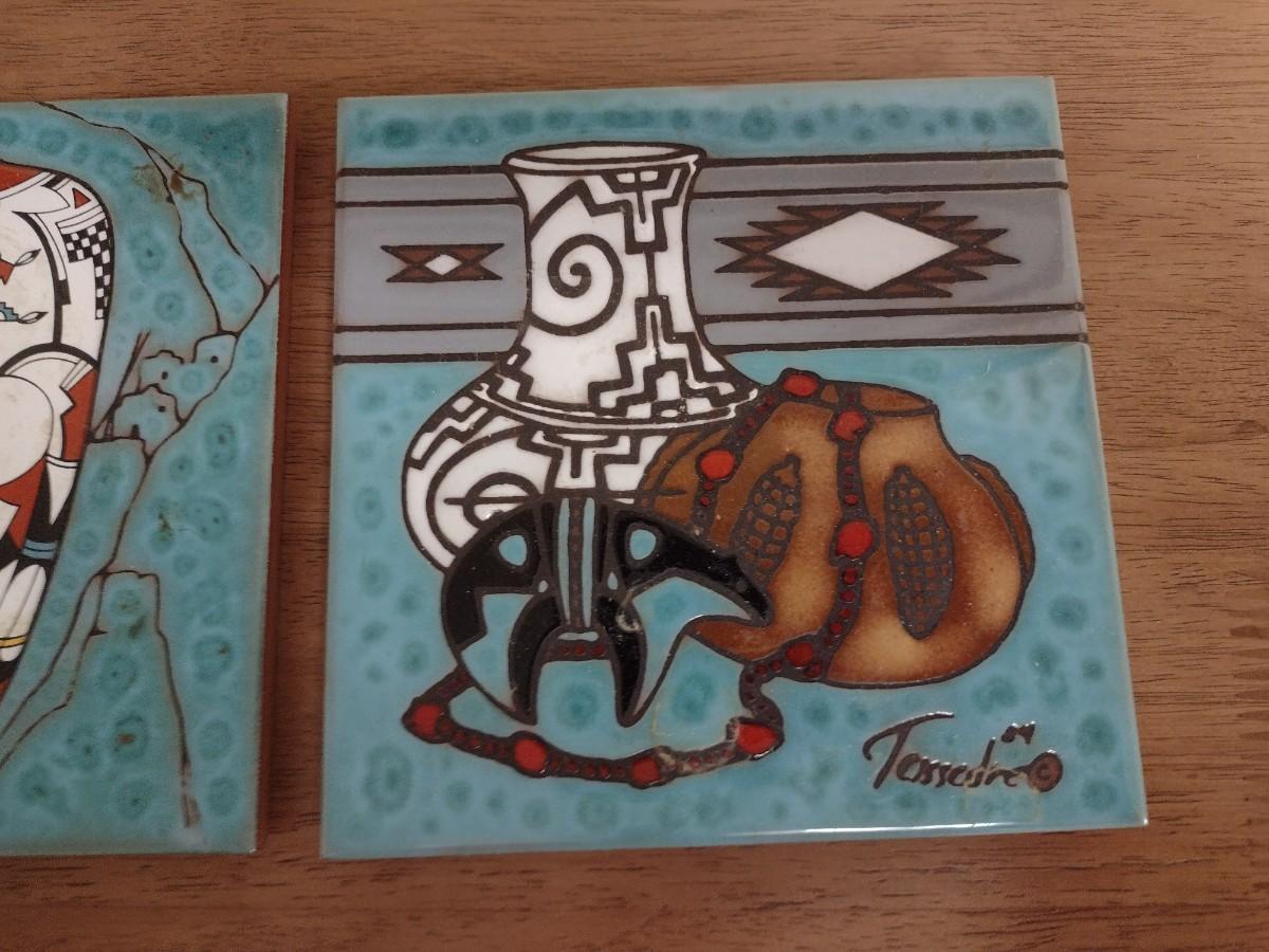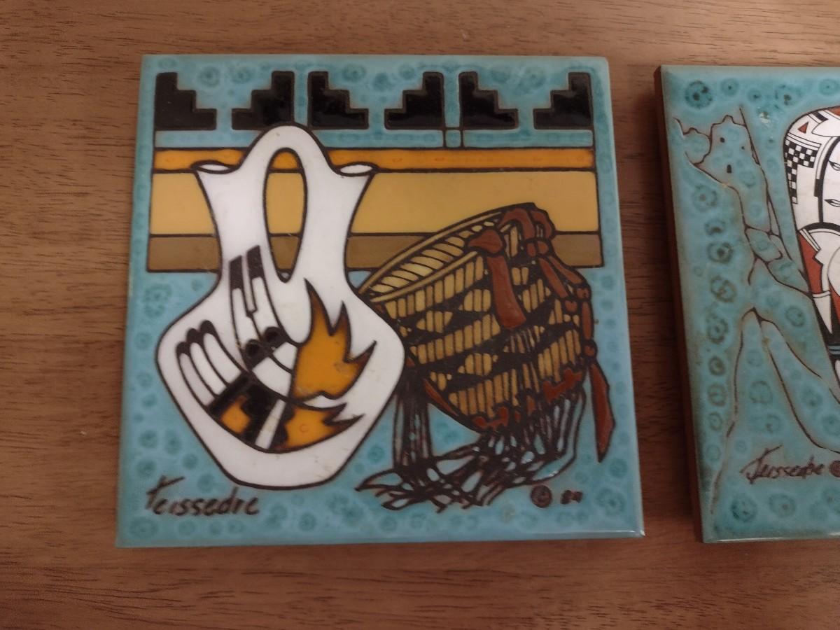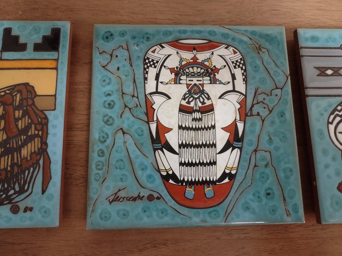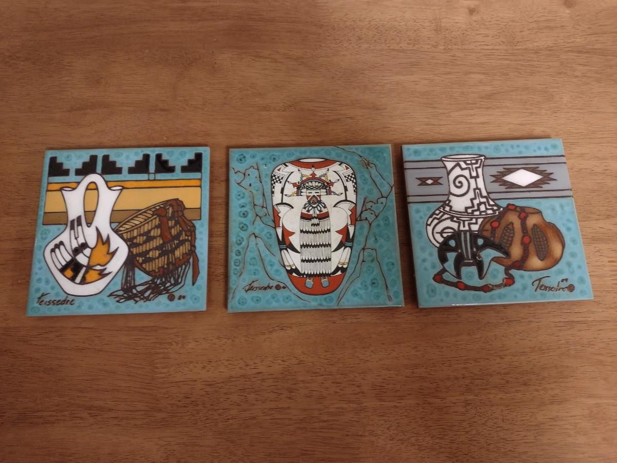 Set of Three Cleo Teissedre Southwestern Art Tile 6" Trivets