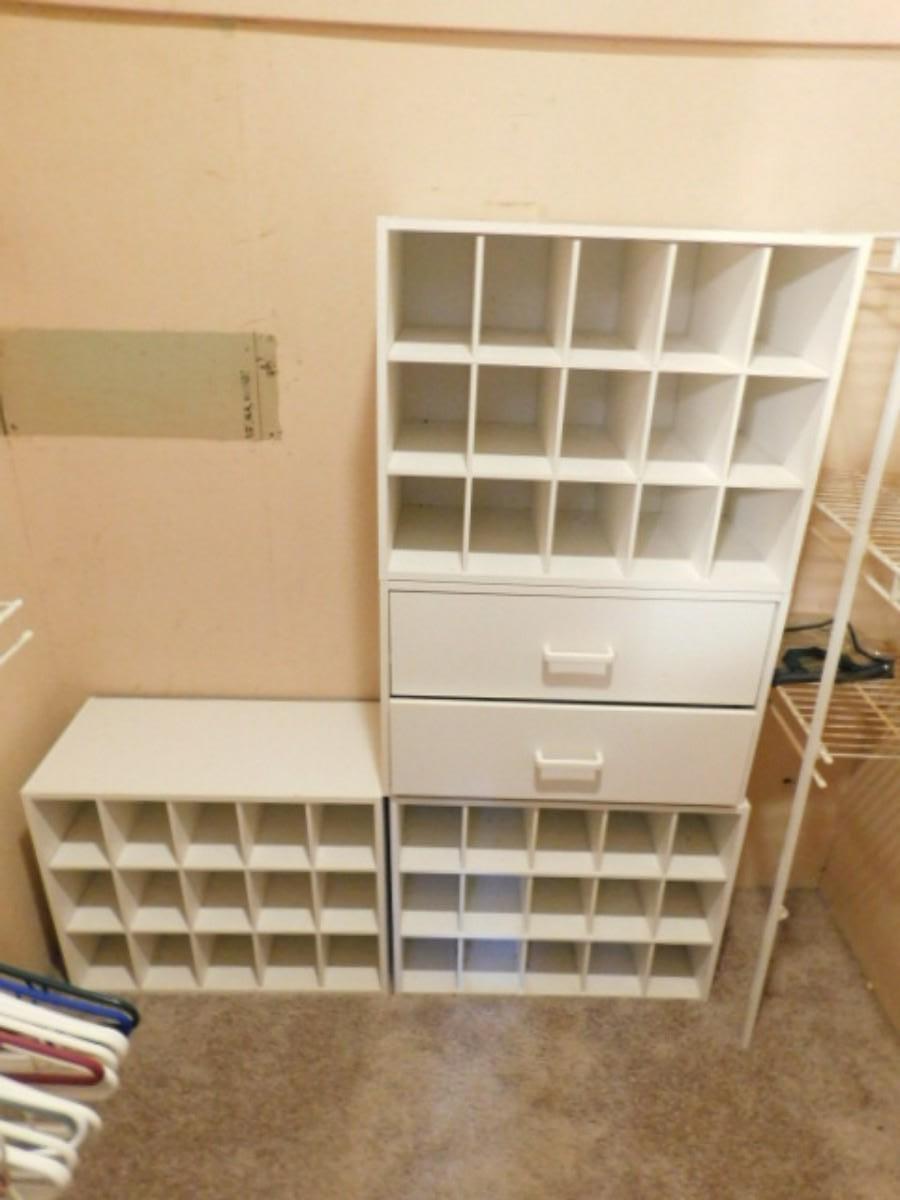 Set of Three Closet Organizers. Upstairs items. Please bring assistance to remove from home.