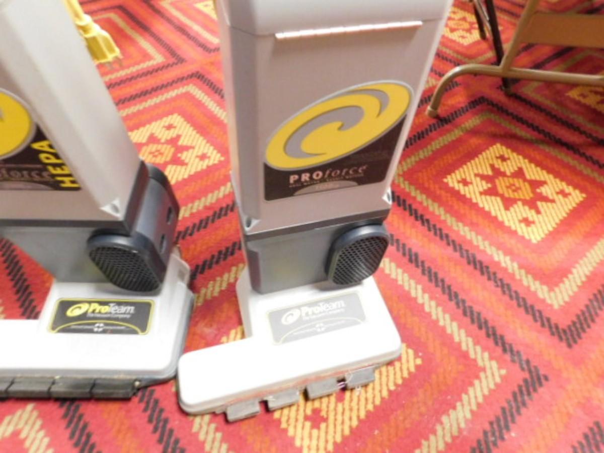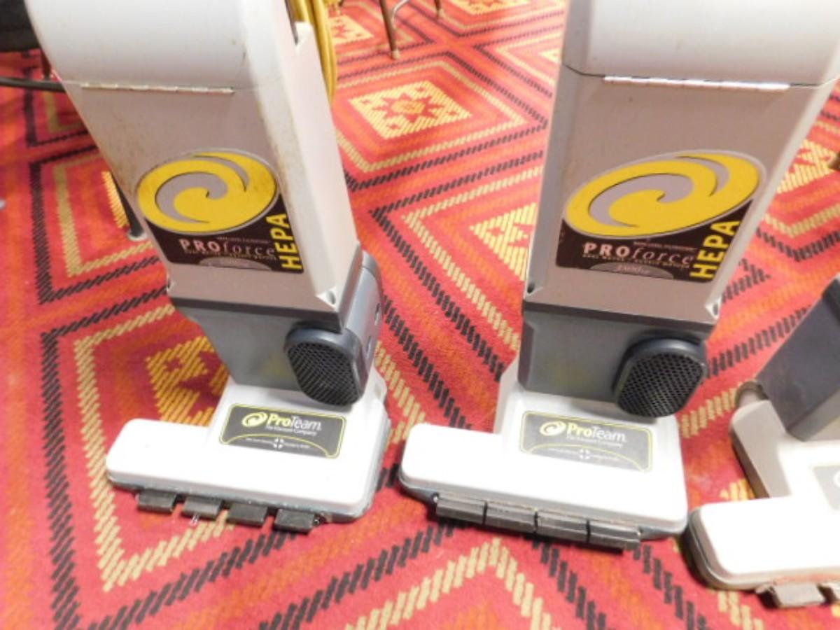 Set of Three Commercial ProForce Vacuum Cleaners Choice B. Appear to work but not extensively tested. As is. Expect some wear or scratches to finish. Shipping option available via freight or local mover at Buyer's expense. Buyer must have all shipping scheduled within the stated dates and times of pickup. Recommended local mover is Beaty Bros. Moving 828-201-2982