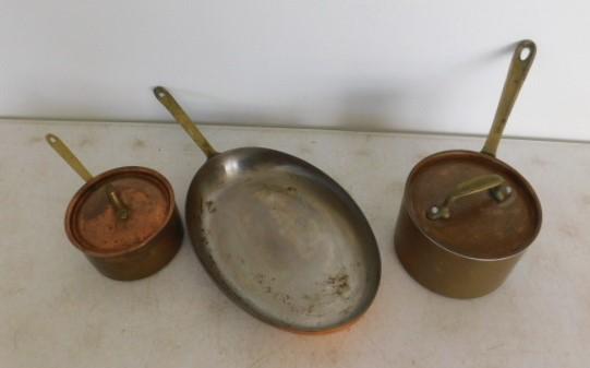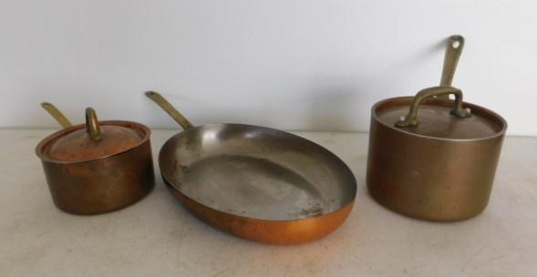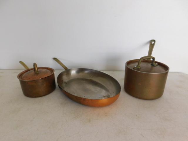 Set of Three Copper Paul Revere Ware Pots and Skillet