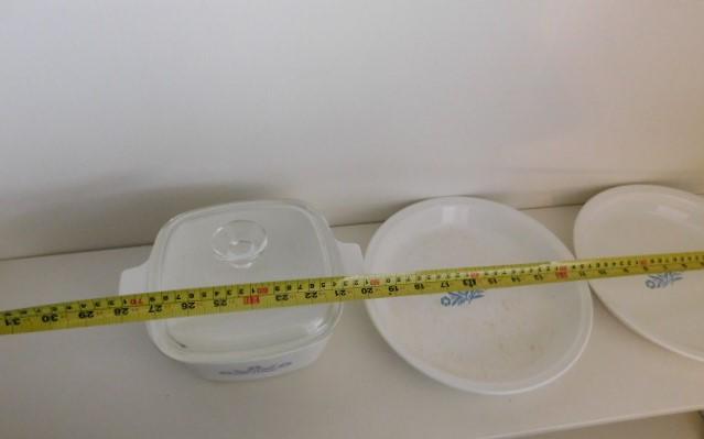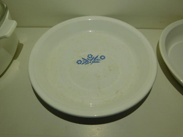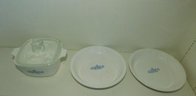 Set of Three Corning Ware Blue Cornflower Baking Dishes. One dish has some spotting