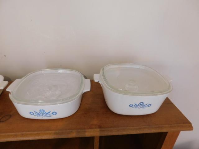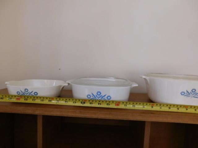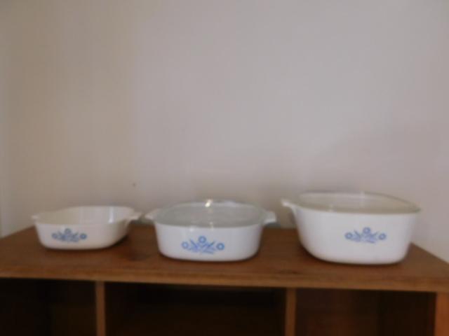 Set of Three Corning Ware Blue Corn Flower Baking Dishes