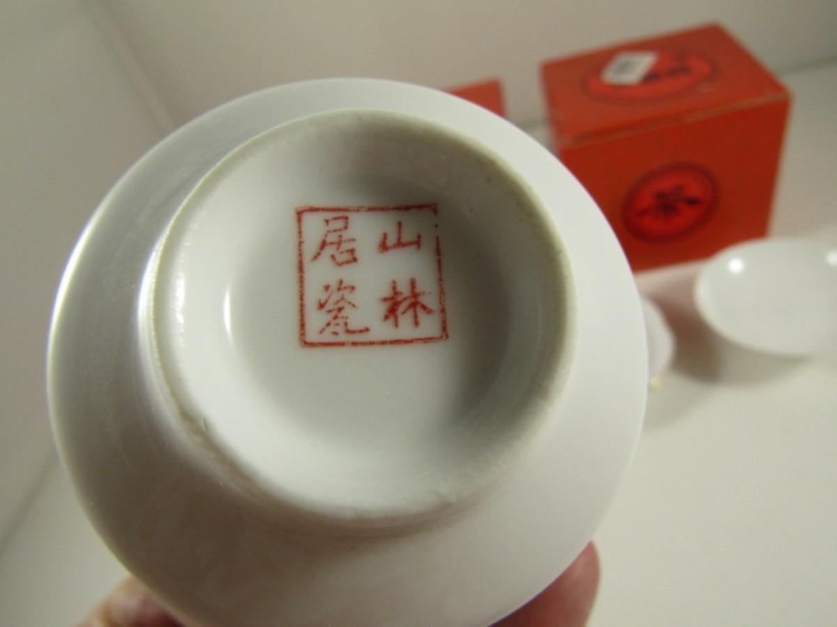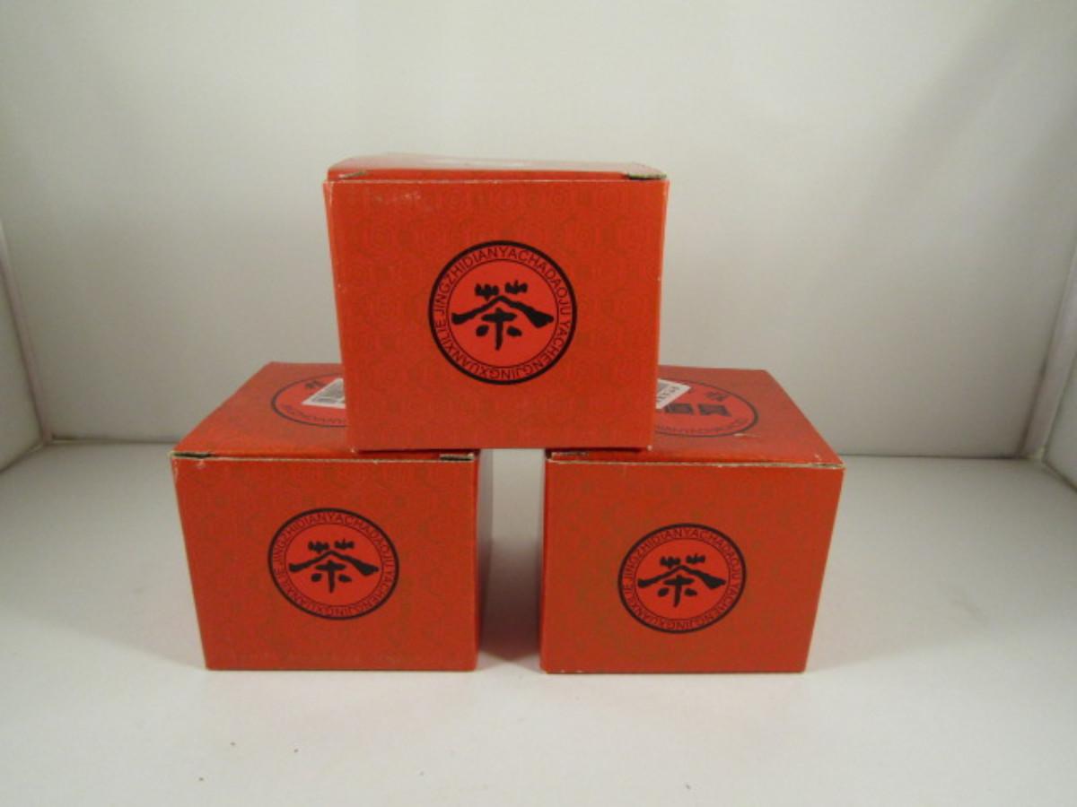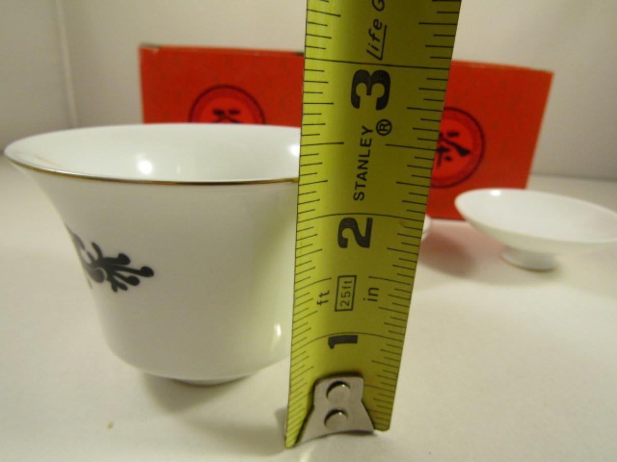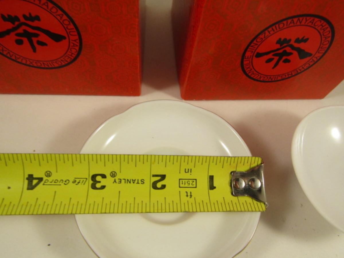 Set of Three Covered Cups and Saucers with Dragon Design