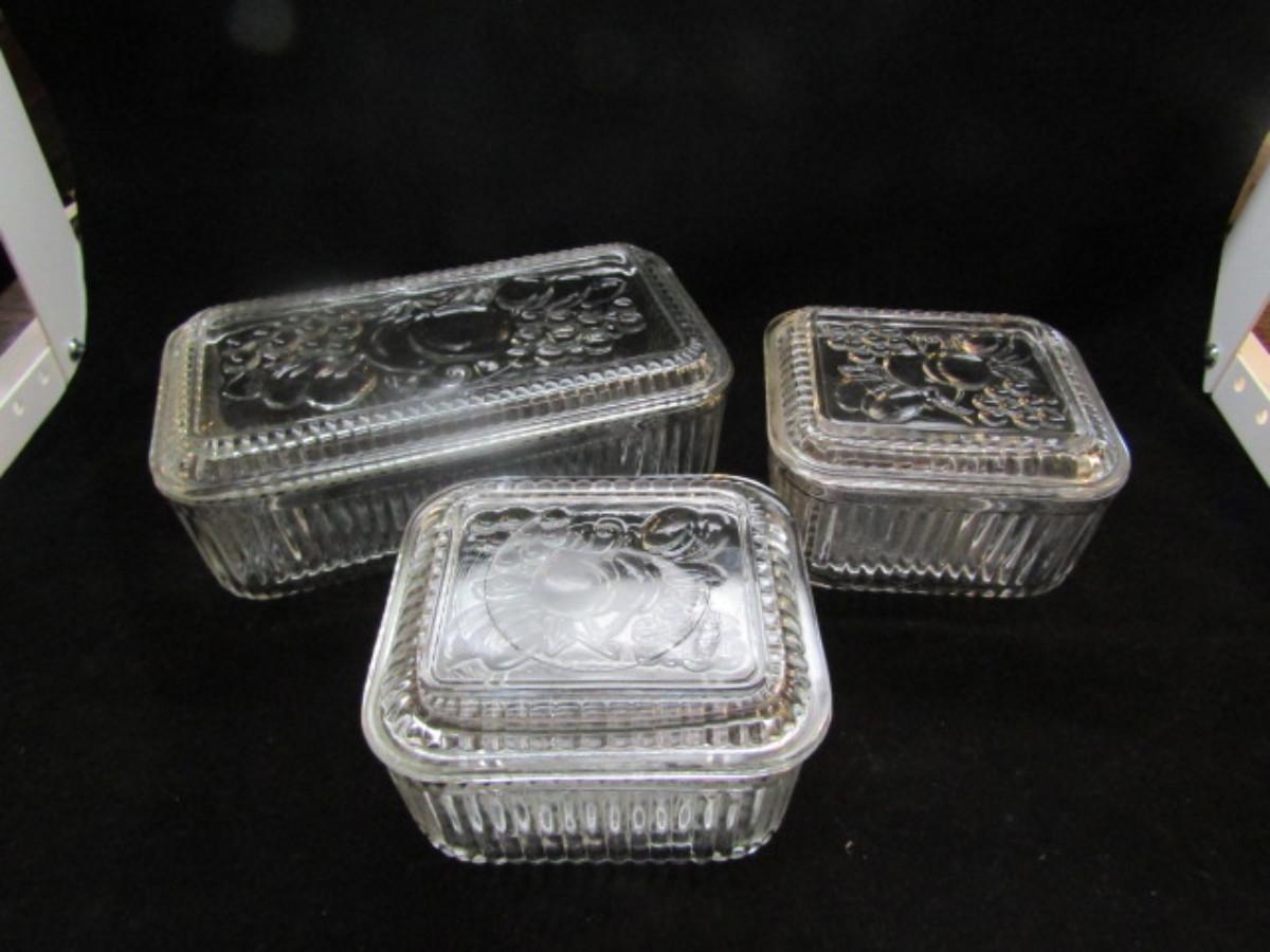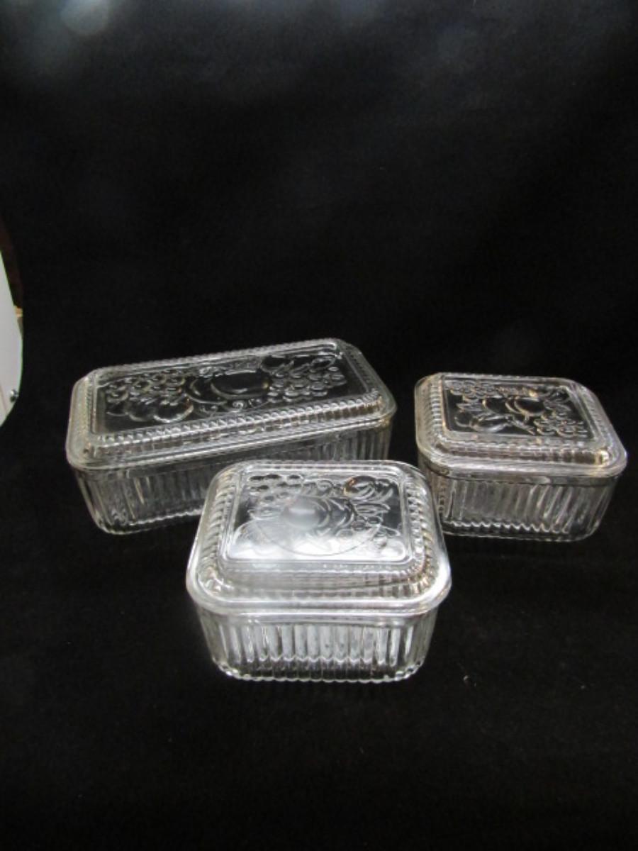 Set of Three Covered Glass Refrigerator Dishes by Anchor Hocking (#6)