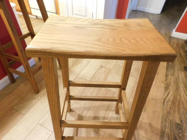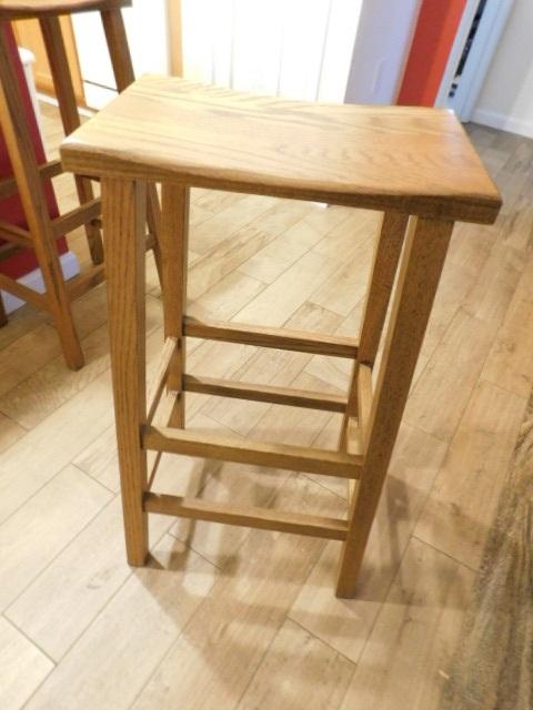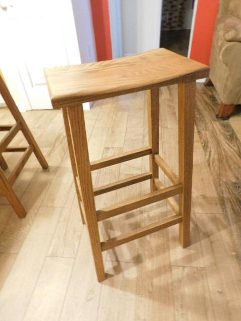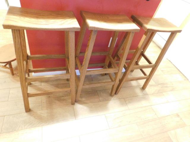 Set of Three Custom Made Solid Wood Saddle Seat Bar Stools Amish Heartland Collection